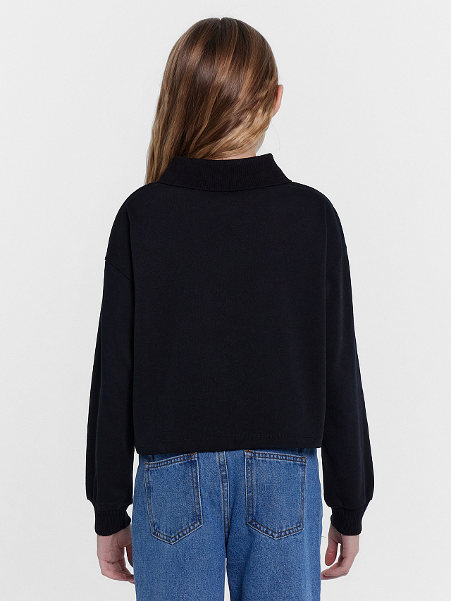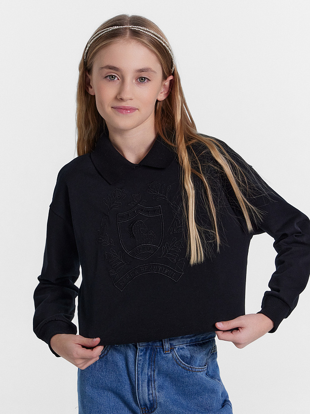 Джемпер для девочек черный с вышивкой