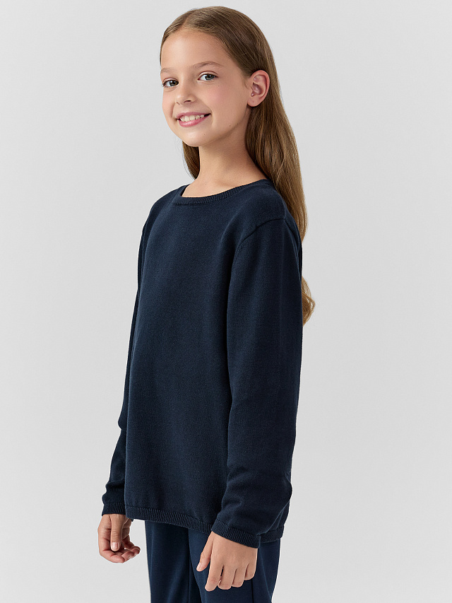 Однотонный джемпер прилегающего силуэта для девочек. Выполнен из высококачественного хлопка. Вырез круглый, не глубокий. Рукава длинные. Идеально для школы и мероприятий, предполагающих официально-деловой стиль одежды. Мягкая и невероятно комфортная модель для повседневной носки в школу, для внеклассных занятий и как базовая одежда на каждый день. Дополнить такой лонгслив можно юбкой, брюками, сарафаном и другими вещами из детского гардероба. Рекомендуем этот хлопковый джемпер для девочек!