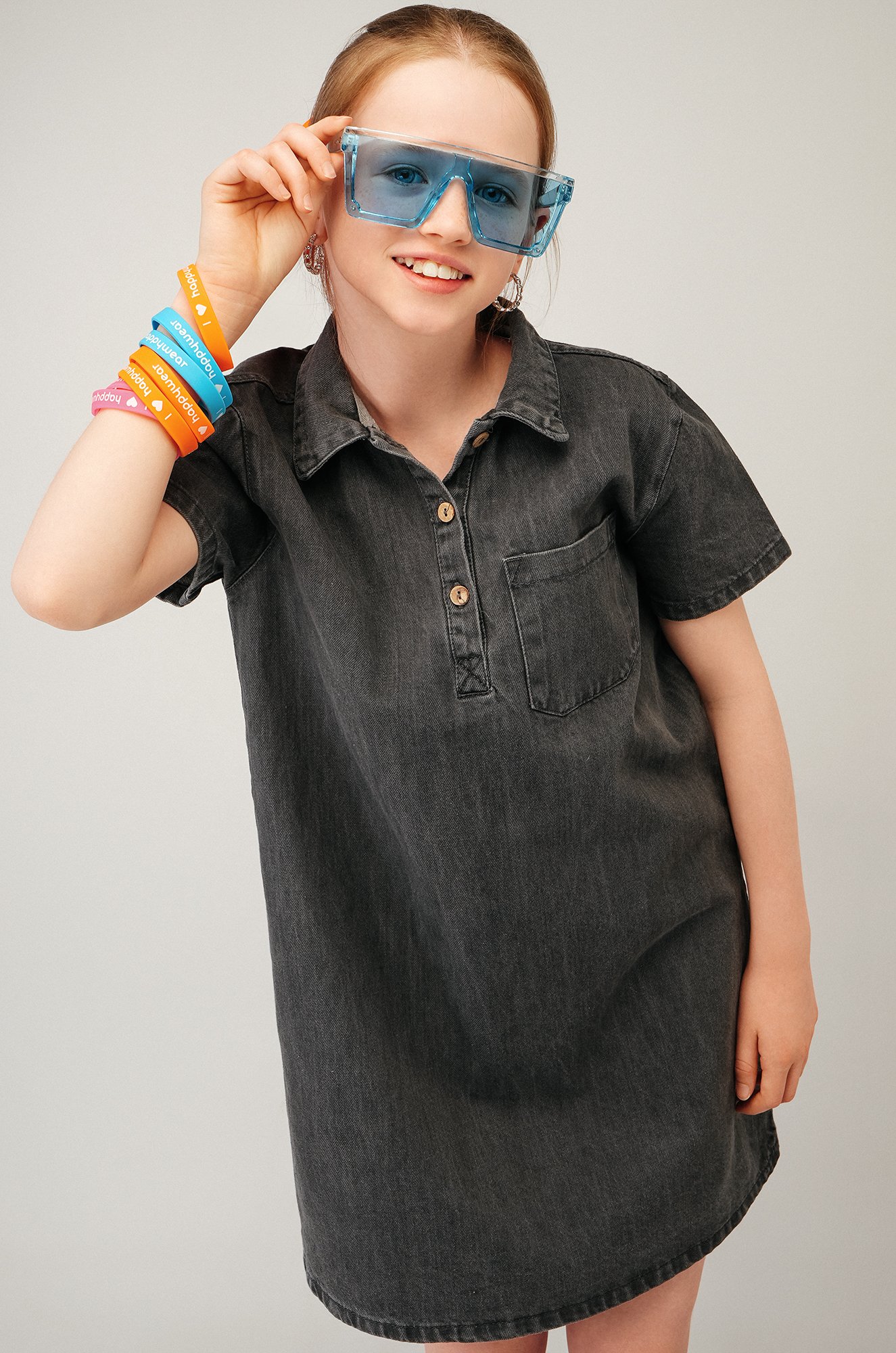 Джинсовое платье с коротким рукавом для девочки Happyfox