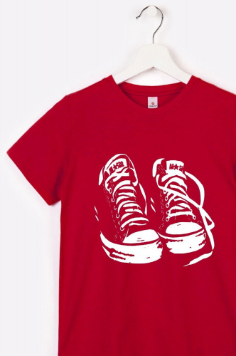 Детская футболка выполнена из дышащего 100% хлопка – отличное решение для жарких дней. Рисунок Кеды поднимет настроение и зарядит энергией на весь день!