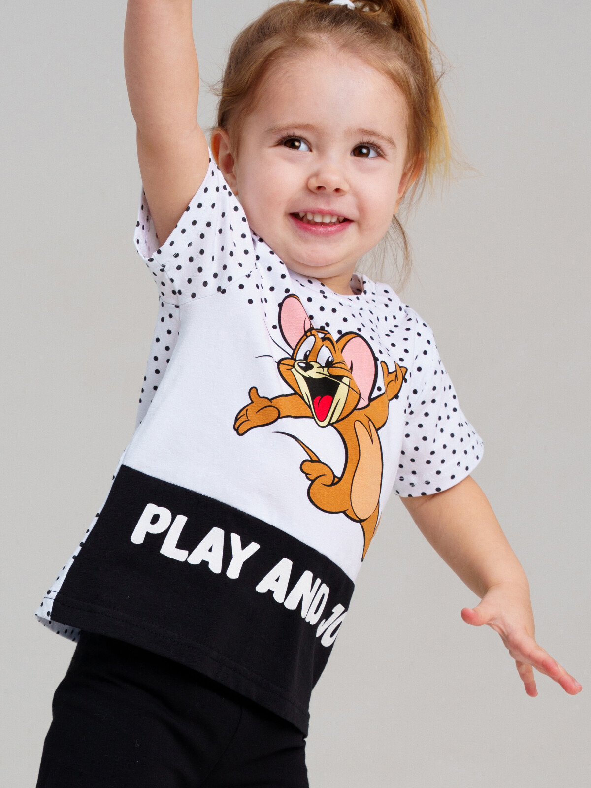 Футболка детская для девочки. Высокое содержание хлопка. Благодаря наличию эластана в составе ткани изделие держит форму и меньше мнется. Застежка на кнопки на плече. Модель выполнена из качественного и приятного на ощупь трикотажа.