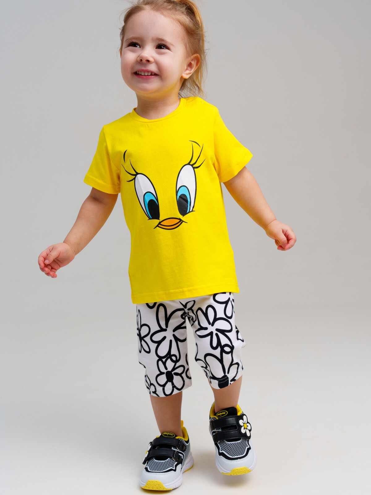 Футболка детская для девочки. Высокое содержание хлопка. Благодаря наличию эластана в составе ткани изделие держит форму и меньше мнется. Застежка на кнопки на плече. Модель выполнена из качественного и приятного на ощупь трикотажа.