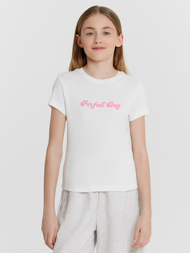 Футболка для девочек белая с принтом в виде надписи "Perfect day"
