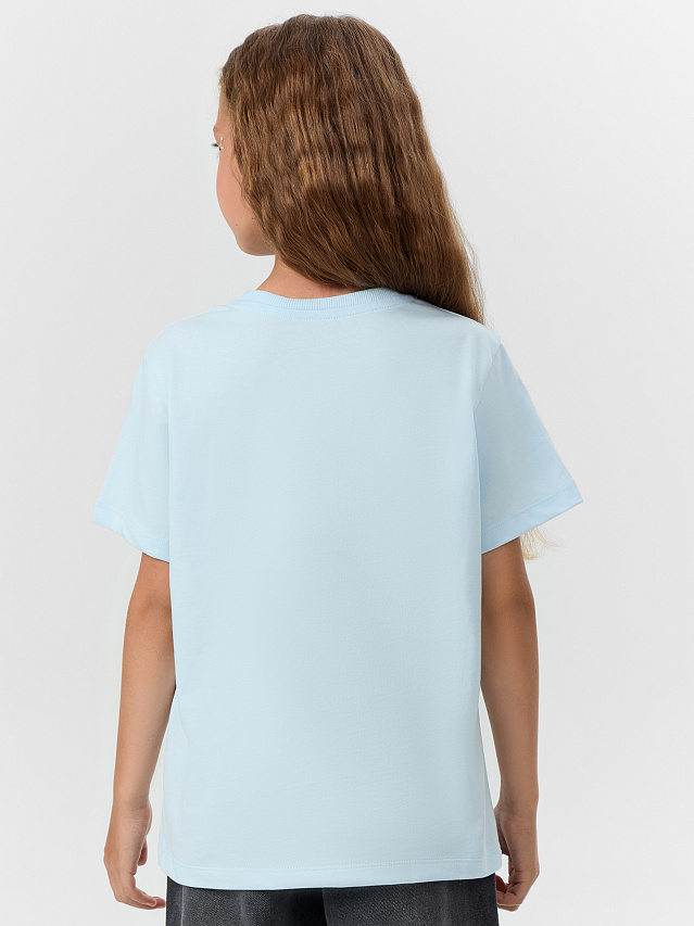Футболка для девочек голубая с принтом и надписью "superstar"