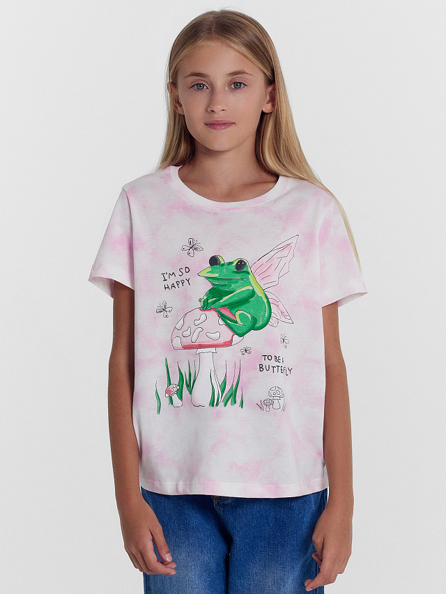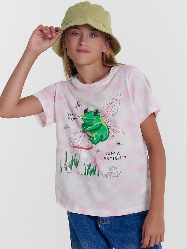 Футболка для девочек из высококачественного хлопка для девочек. Рукава - чуть выше локтя, линия плеча спущена. Горловина круглой формы из рибаны. Отличается стильным и лаконичным дизайном. Круглый вырез горловины и прямой силуэт придают ей изящный и женственный вид, подчеркивая нежность и очарование юной модницы. Благодаря использованию натуральных материалов, эта футболка позволяет коже дышать, предотвращая перегрев и раздражение. Эта модель — одно из уникальных изделий, которые проходят этап дополнительной обработки "варка". Каждая вещь отличается своим особенным и неповторимым рисунком. Многообразие ярких, жизнерадостных расцветок, от пастельных нежных оттенков до насыщенных глубоких тонов, позволит вашей малышке выбрать футболку, идеально подходящую к ее индивидуальному стилю и настроению!