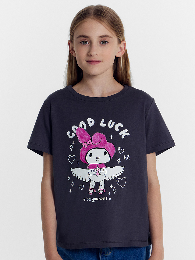 Футболка для девочек серая с зайкой