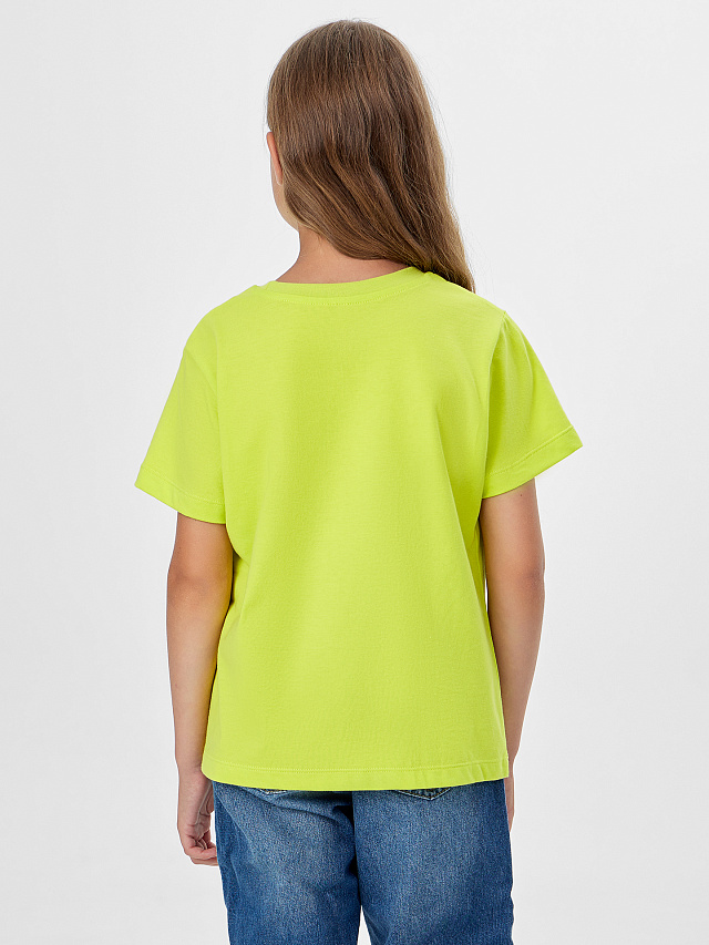 Яркий желтый цвет служит прекрасным фоном для веселого принта, делая футболку универсальной для сочетания с юбками, шортами и джинсами.