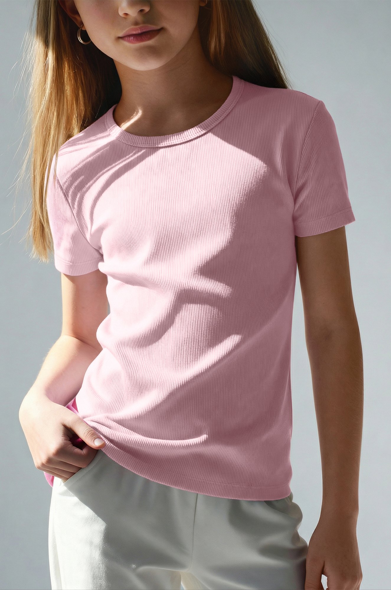Детская футболка в рубчик для девочек — стильное сочетание комфорта и лаконичности. Облегающая футболка мягко повторяет фигуру и подходит для повседневных образов. Футболка выполнена из кашкорсе — это плотный трикотаж с характерной рубчатой текстурой.