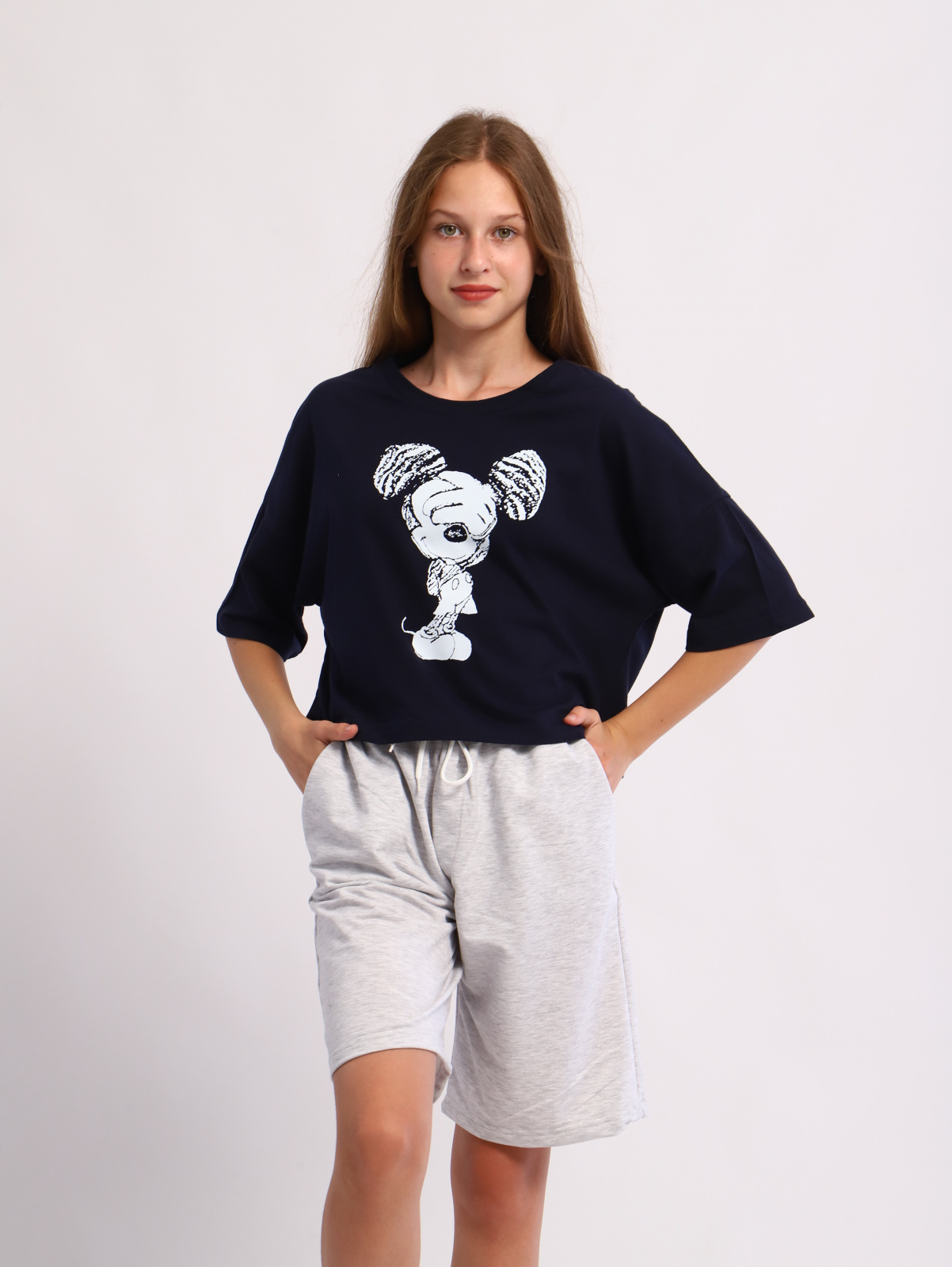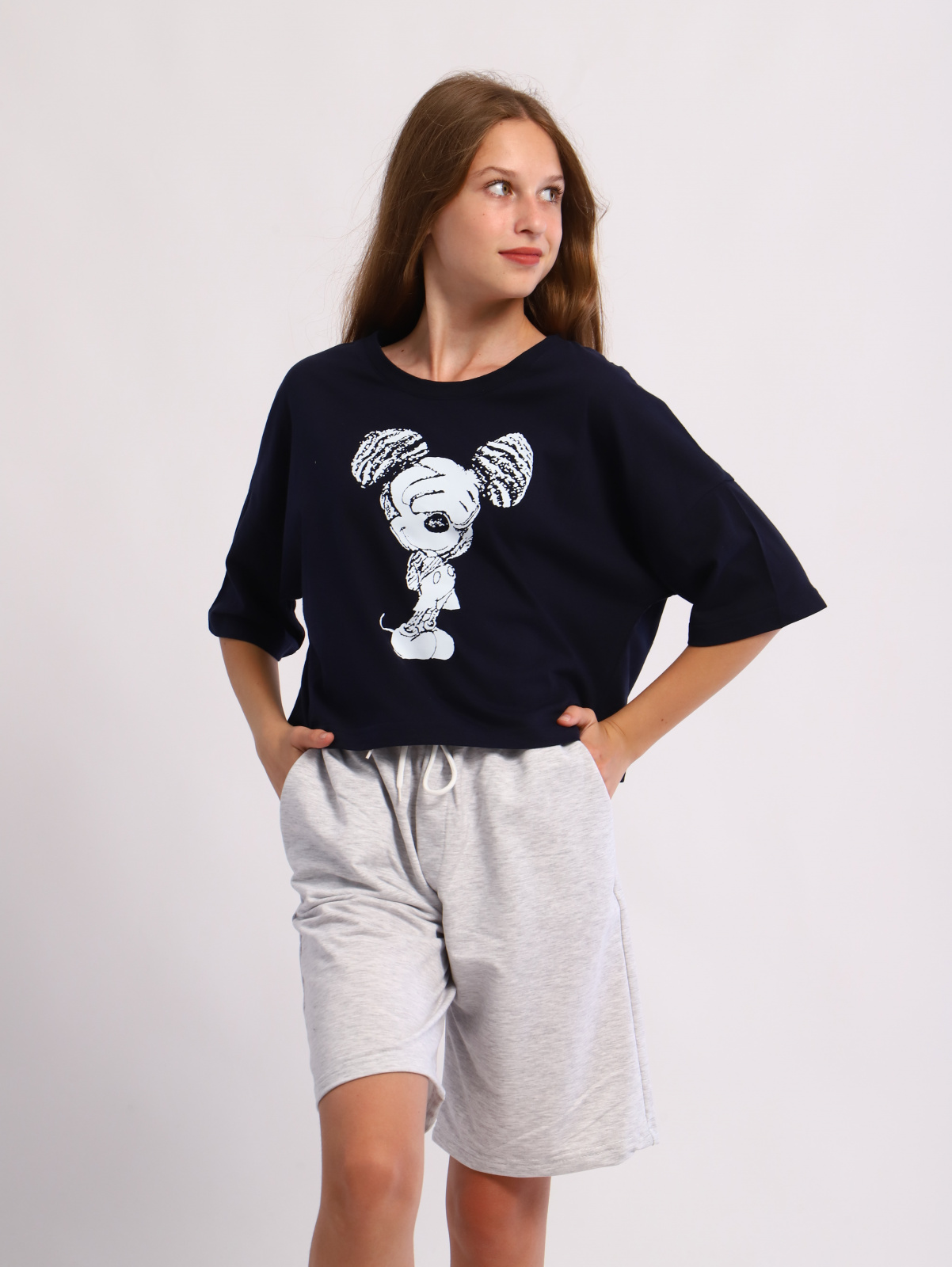 Подростковый майка свободного, прямого силуэта, с короткими рукавами, удобна при носке, не стесняет движений.