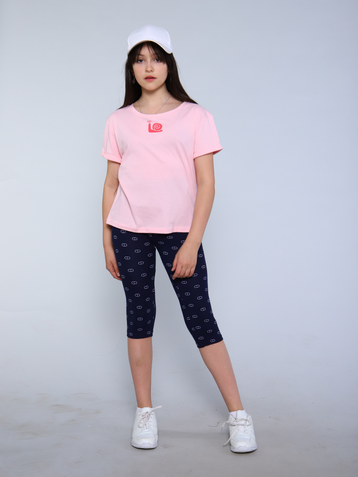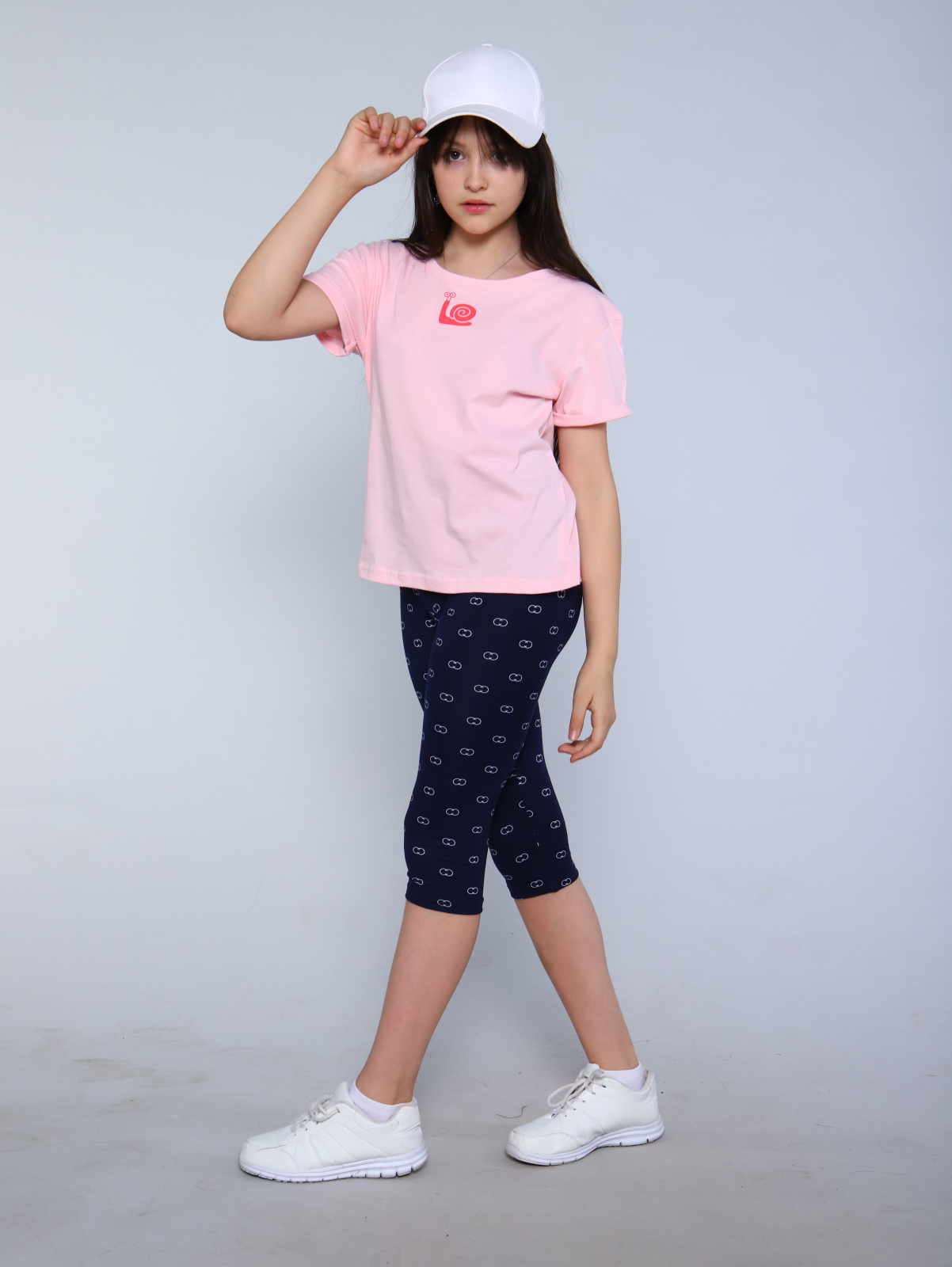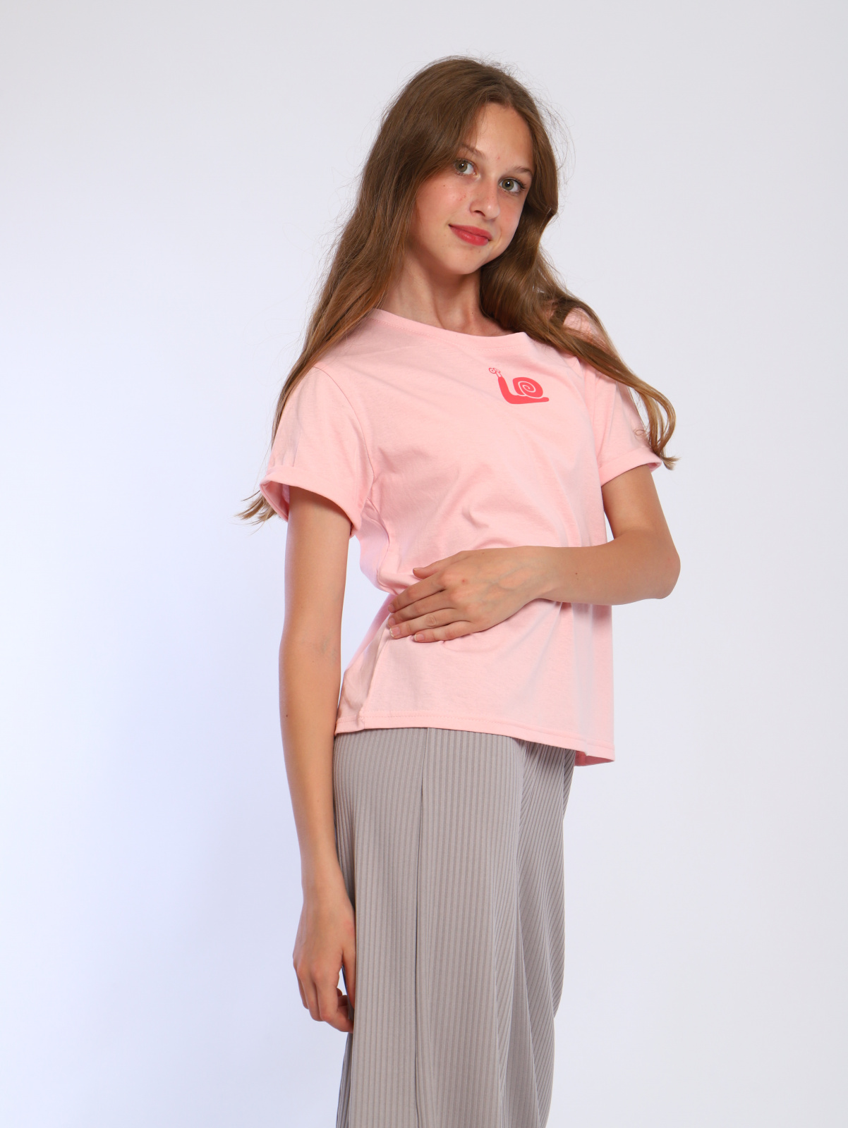 Летняя футболка для девочки-подростка в ярких позитивных цветах с принтом «улитка». Подростковый топ сшит из легкой натуральной ткани-трикотажа со 100% содержанием хлопка. Крой модного широкого силуэта оверсайз с короткими рукавами с отворотами, горловина с круглым вырезом.