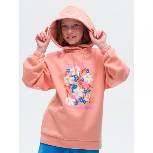 Состав: 72%хлопок 28%полиэстерОписание: Худи силуэта оверсайз из футера с начесом для девочки. Натуральный хлопок и эластан в составе – тело дышит, ткань меньше мнется, дольше сохраняет аккуратный внешний вид, при этом очень тепло. Теплый и удобный капюшон – объем регулируется плетеным шнуром с декоративными кисточками. Широкие рукава, спущенное плечо, свободный крой – настоящий трендовый оверсайз. Яркий цветной принт спереди для позитивного настроения. Худи составляет гармоничный дуэт с джоггерами или слоучами. Идеально для активного детства – на каждый день, для учебы и занятия спортом.