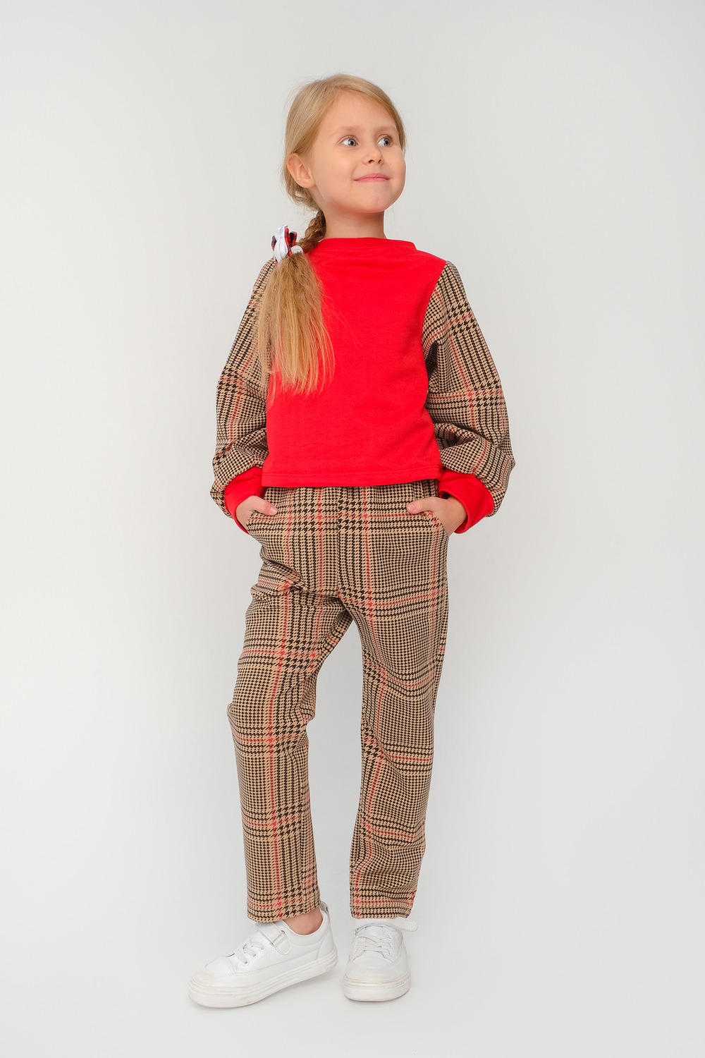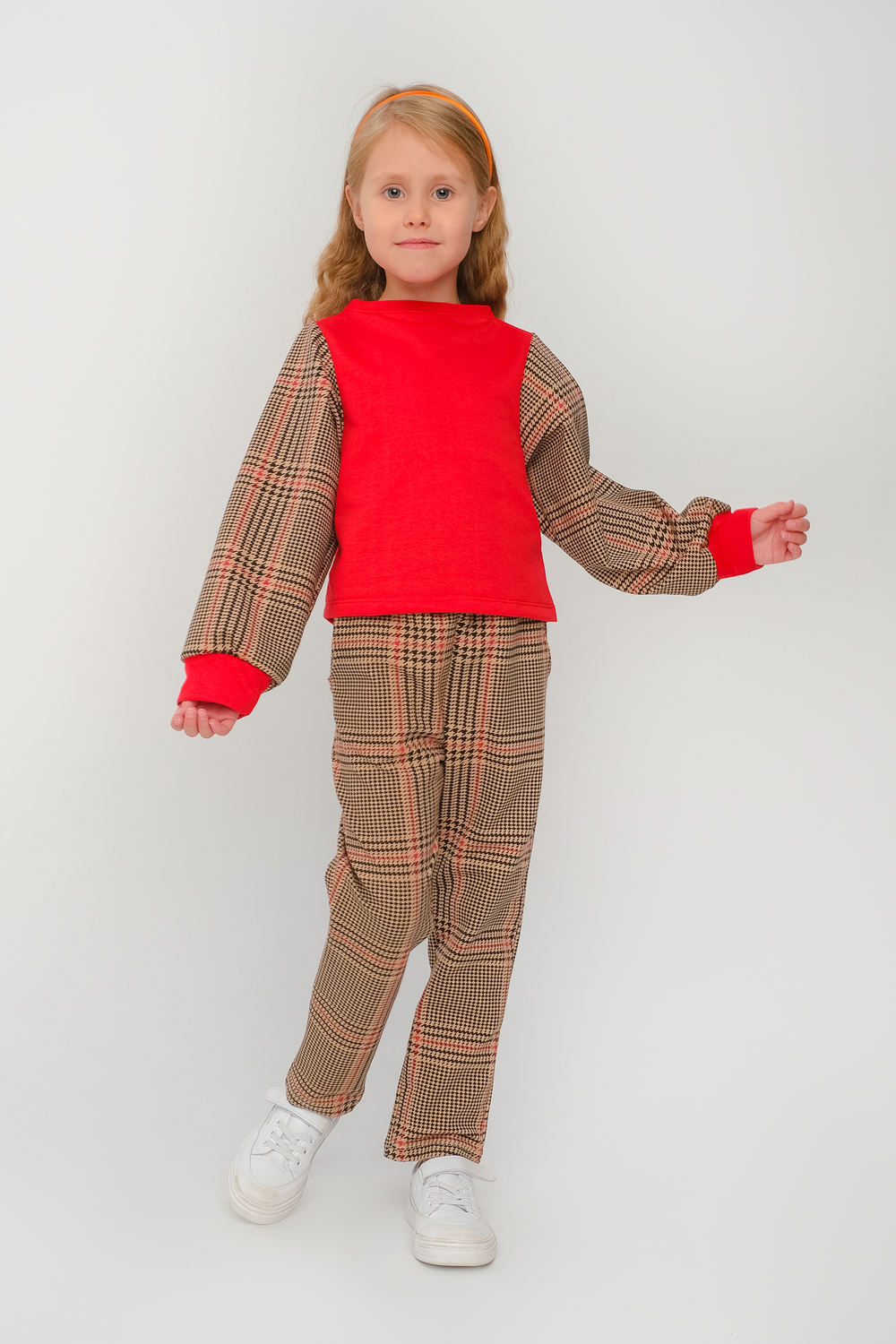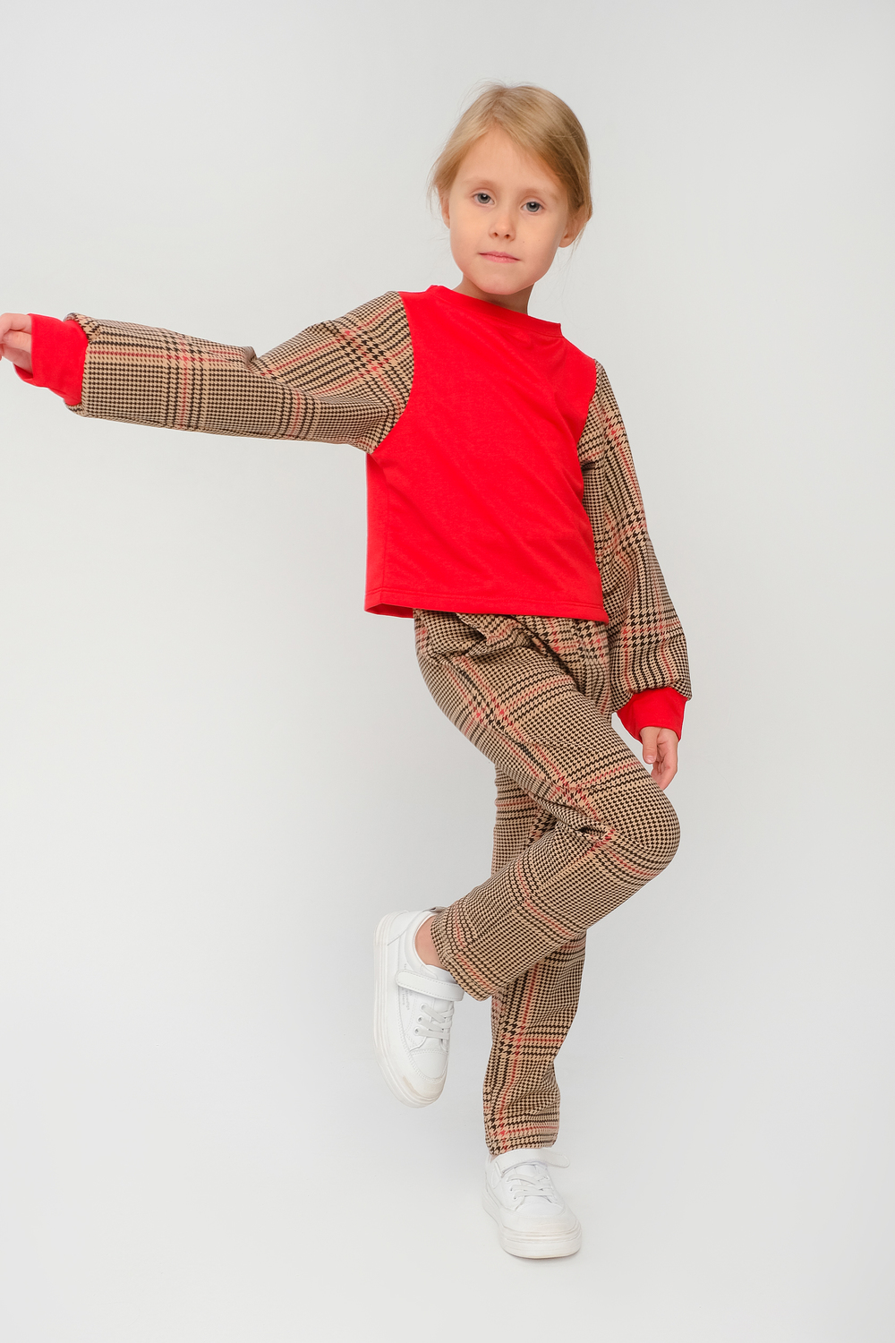 Костюм из мягкого футера двунитки качества пенье. Свободный крой, свитшот с расширенными рукавами, брюки прямые узкие с боковыми карманами. Подходит для прогулок, для садика, для дома. Легкий в уходе, после стирки не линяет, не деформируется, не пилингуется Цвет: красный; Материал: футер 2-х нитка;футер 2-х нитка; Состав: 70% хлопок, 30% п\э..