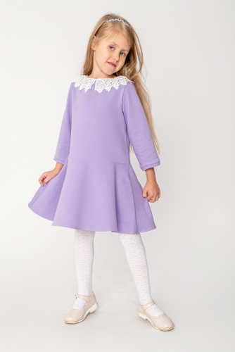 Классическое платье с кружевным воротником для девочки для особых случаев и для повседневного наряда. Стильное платье выполнено из трикотажного полотна двунитки, с кружевным воротником, с потайной молнией по спинке. Простое в уходе, легко стирается и утюжится.