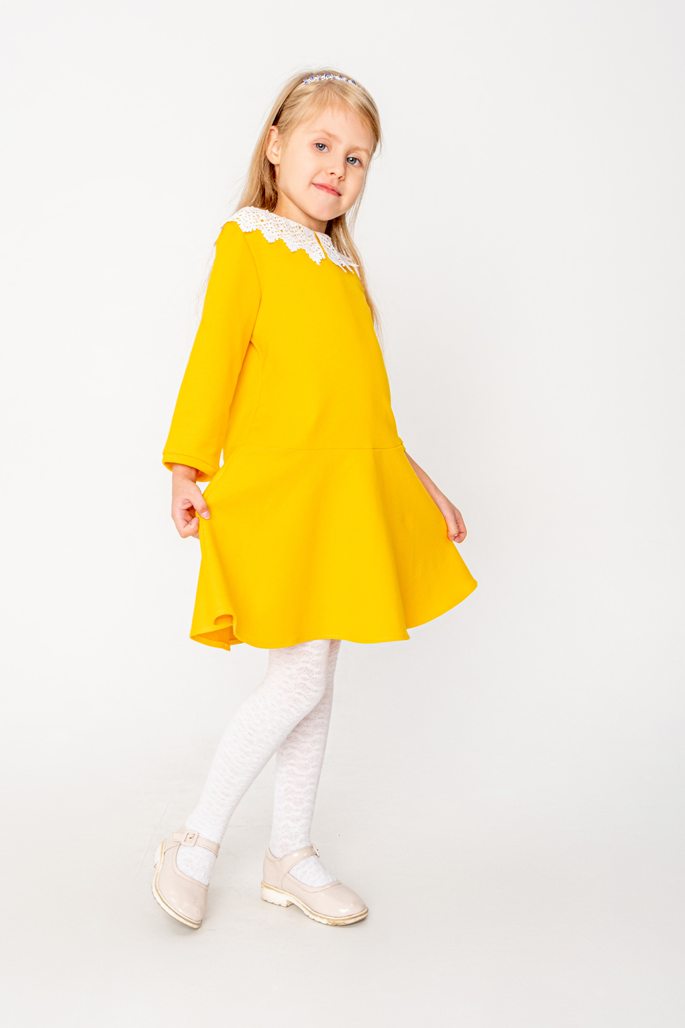 Классическое платье с кружевным воротником для девочки для особых случаев и для повседневного наряда. Стильное платье выполнено из трикотажного полотна двунитки, с кружевным воротником, с потайной молнией по спинке. Простое в уходе, легко стирается и утюжится.