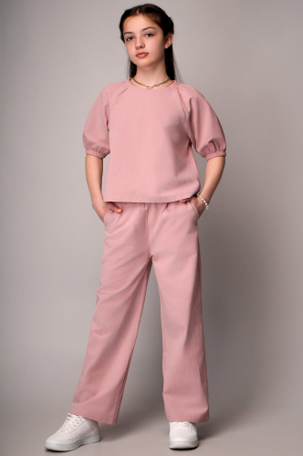 Подростковый костюм со штанами идеально подойдет как для встреч с друзьями, так и для особых моментов, когда хочется выглядеть нарядно. А также набор из жатки может стать любимым домашним комплектом.