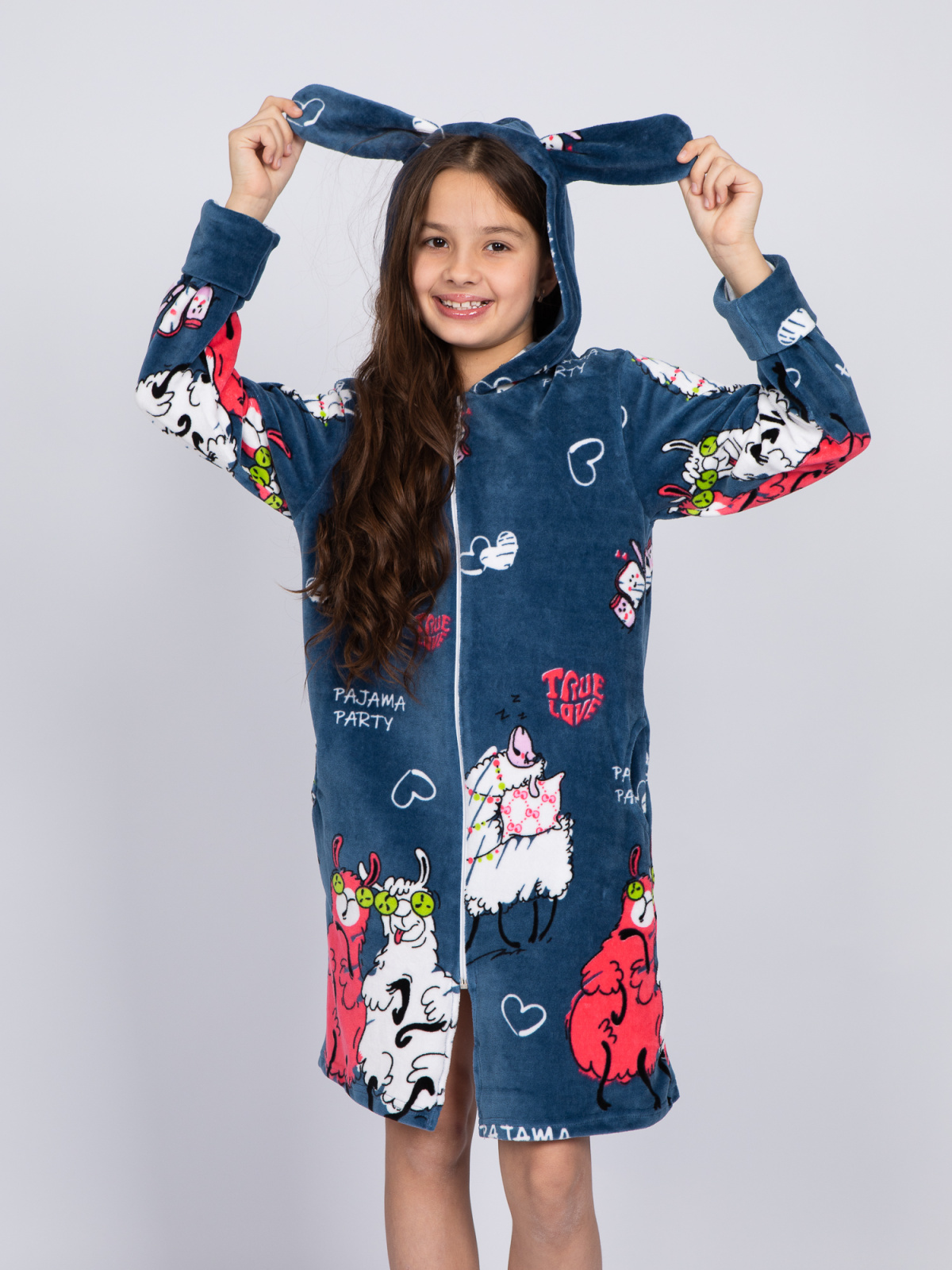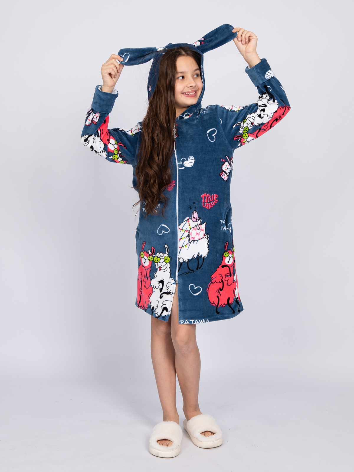 Оригинальный детский домашний халат из мягкого велюрового материала. Модель свободного кроя на молнии, с удобным капюшоном , прорезными карманами по бокам. Халатик выполнен из комфортного велюра с хлопком ярких расцветок, практичного и приятного материала для домашнего использования. Материал заботится о том, чтобы вам было приятно выходить из ванной или душа, а ткань халата очень быстро высыхает. Халат отлично подойдет в качестве домашней одежды, а также как вариант для бассейна, после душа, бани. Согреет в прохладные вечера. Не линяет, не дает усадки и не требует глажки, сохраняет исходный внешний вид очень длительное время. Благодаря высокому качеству ткани, легкости в уходе и безупречному пошиву детский халат станет великолепным подарком для Вашего ребенка. Подарок внучке, дочке, племяннице, крестнице на День Рождения, на Новый год.