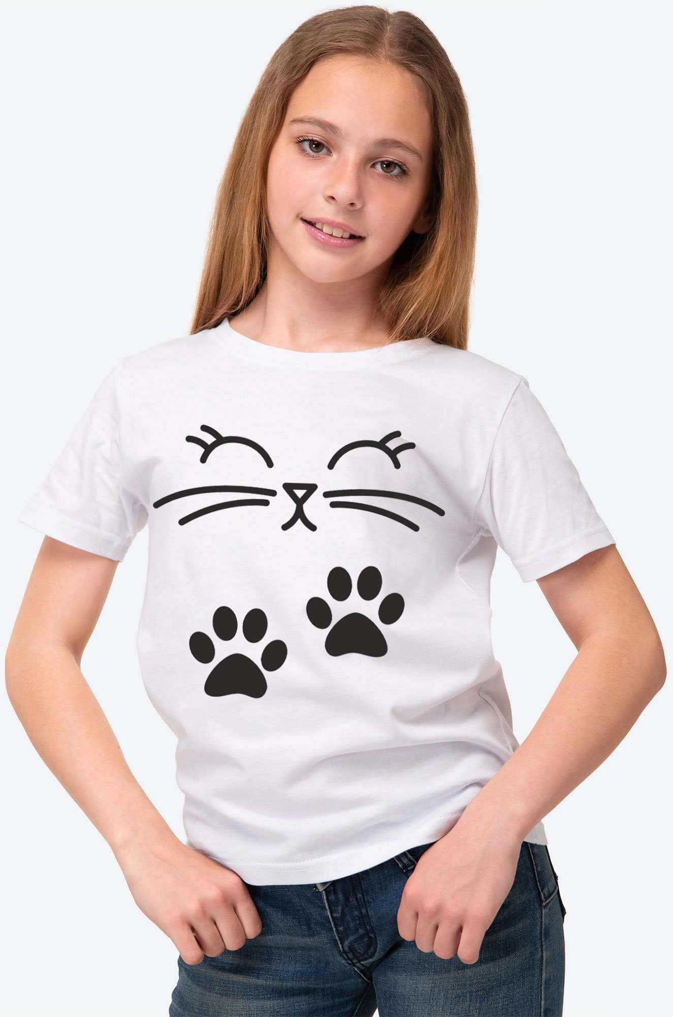 Футболка с принтом Котик – то, что нуж..показатьно для создания запоминающегося образа! Детская футболка с коротким рукавом для девочки и девочки подростка выполнена из 100% хлопка, ткань кулирная гладь.