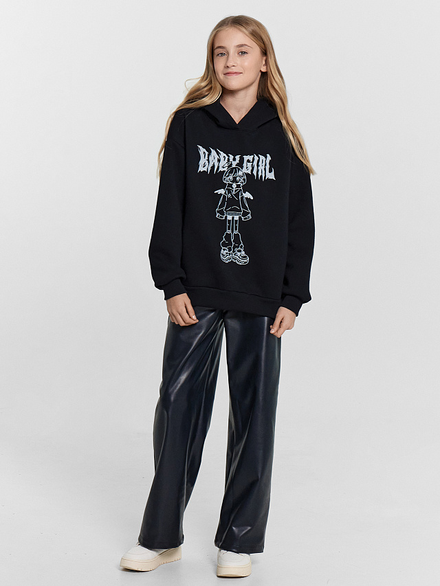 Худи для девочек черное с печатью