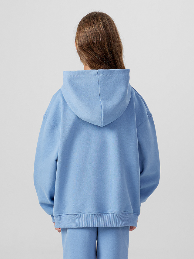 Худи для девочек свободного силуэта в стиле оверсайз — это стильная и удобная модель, идеально подходящая для активного дня, прогулок или домашнего отдыха. Круглая горловина и капюшон со средним швом, выполненный на подкладке из основного материала, создают уютный и завершенный образ. Спущенное плечо и длинный рукав придают худи расслабленный вид, а манжеты из рибаны по низу рукавов обеспечивают хорошую посадку и сохраняют форму. На передней части расположен карман кенгуру — функциональный и стильный элемент, который добавляет удобства и подчеркивает спортивный характер изделия. Худи выполнено из футера без подчеса — плотного, но мягкого материала, который хорошо держит форму и подходит для межсезонья. Это универсальная вещь, которая легко сочетается с джинсами, леггинсами или спортивными брюками, оставаясь актуальной в любом образе.