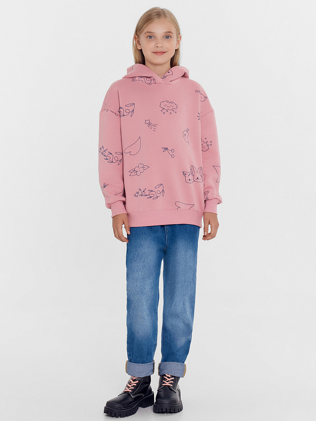 Худи для девочек розовое с рисунками