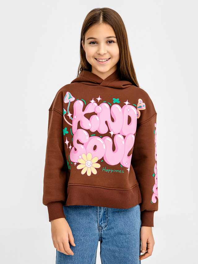 Худи для девочек в бежево-коричневом оттенке с печатью