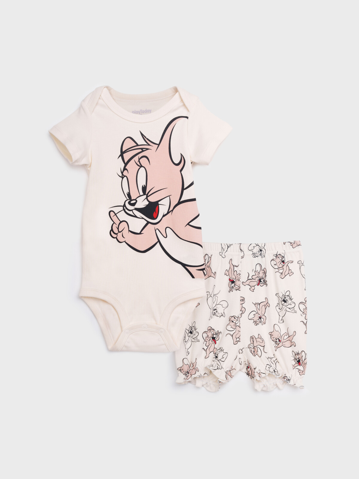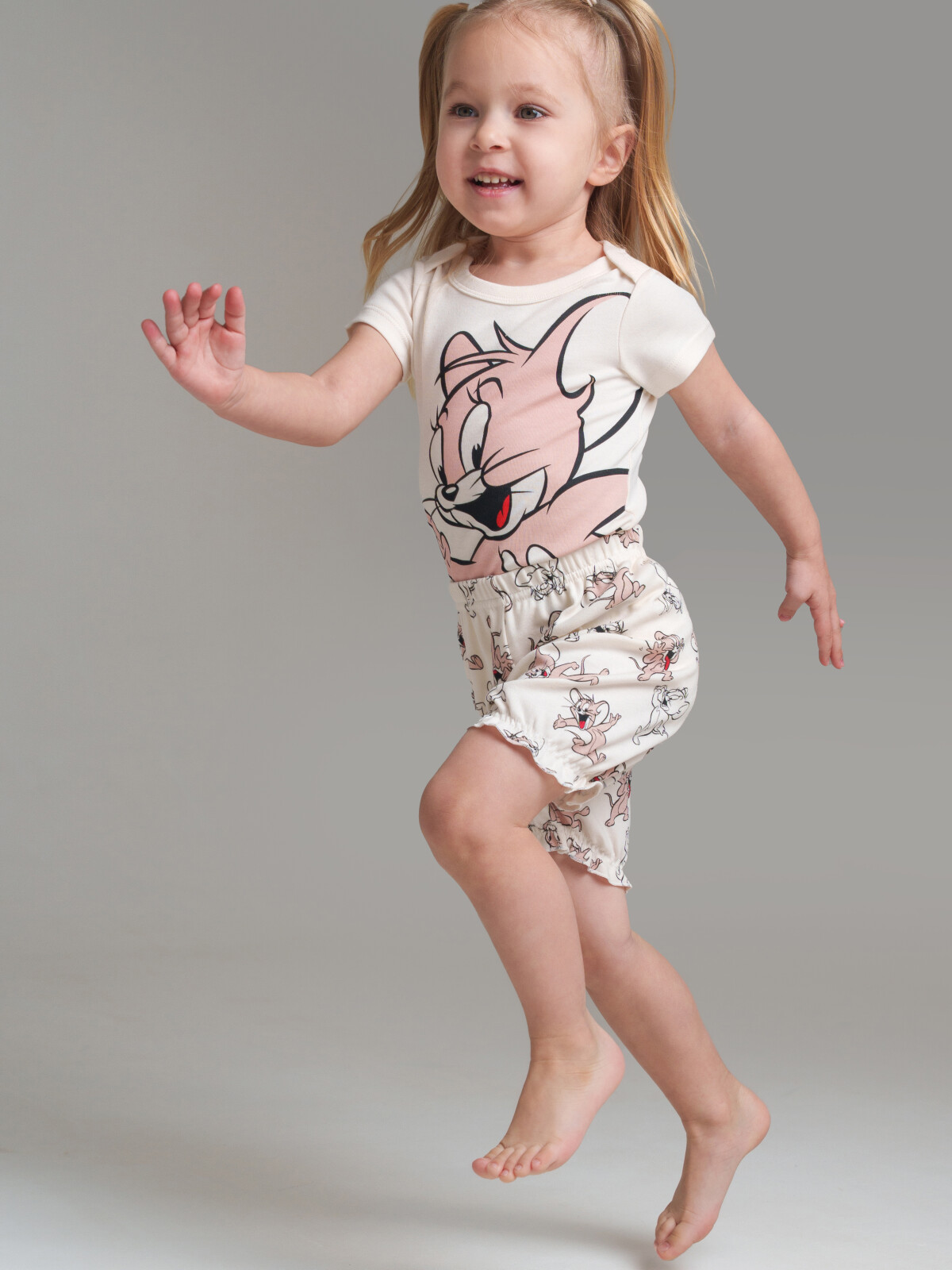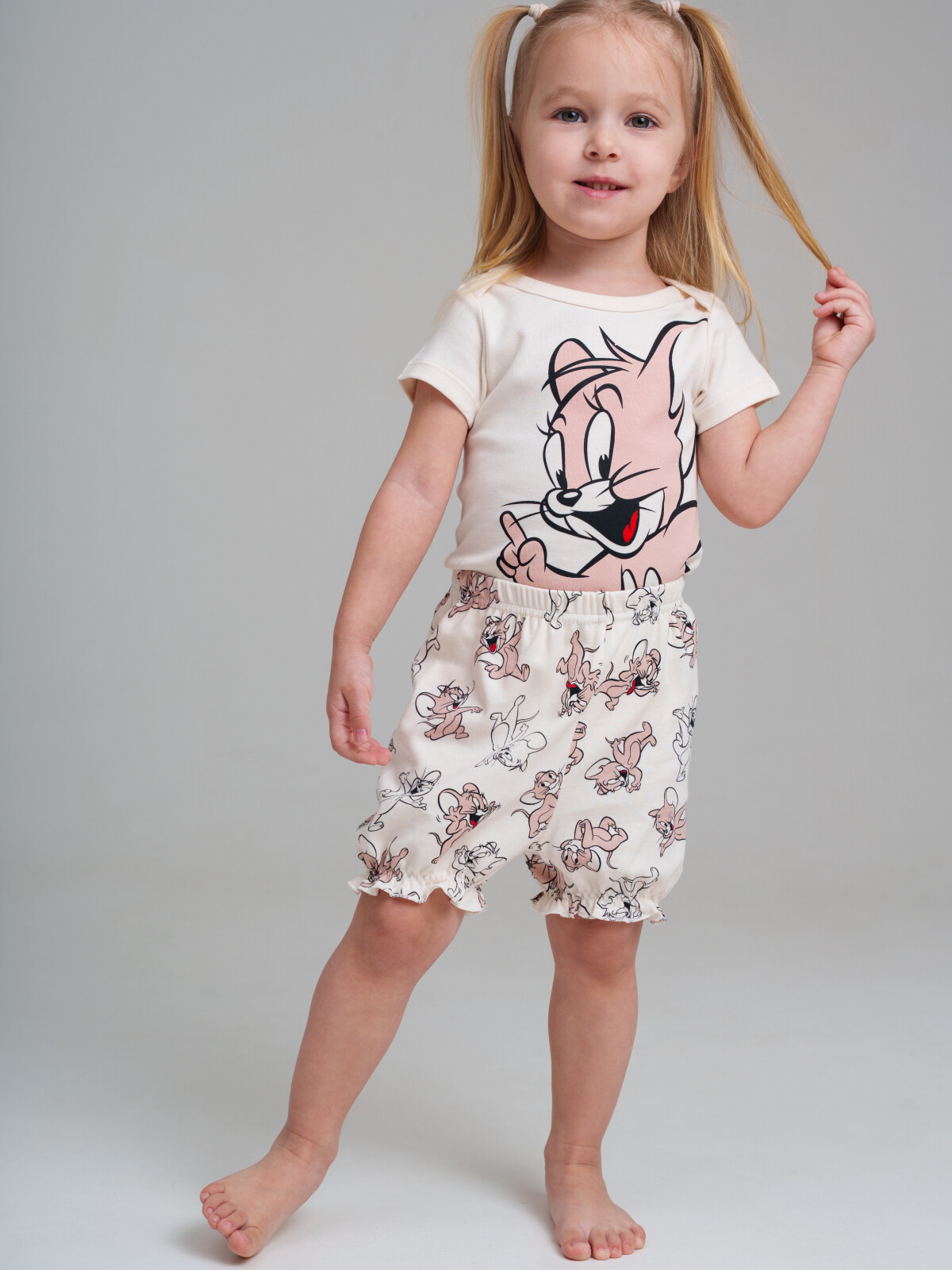 Костюм детский для девочки. Комплект: боди, шорты из натурального хлопкового двойного трикотажа. Кнопки внизу – 2 ряда, боди растет вместе с малышом. Резинка по талии. Шорты на резинке. Модель выполнена из качественного и приятного на ощупь трикотажа.