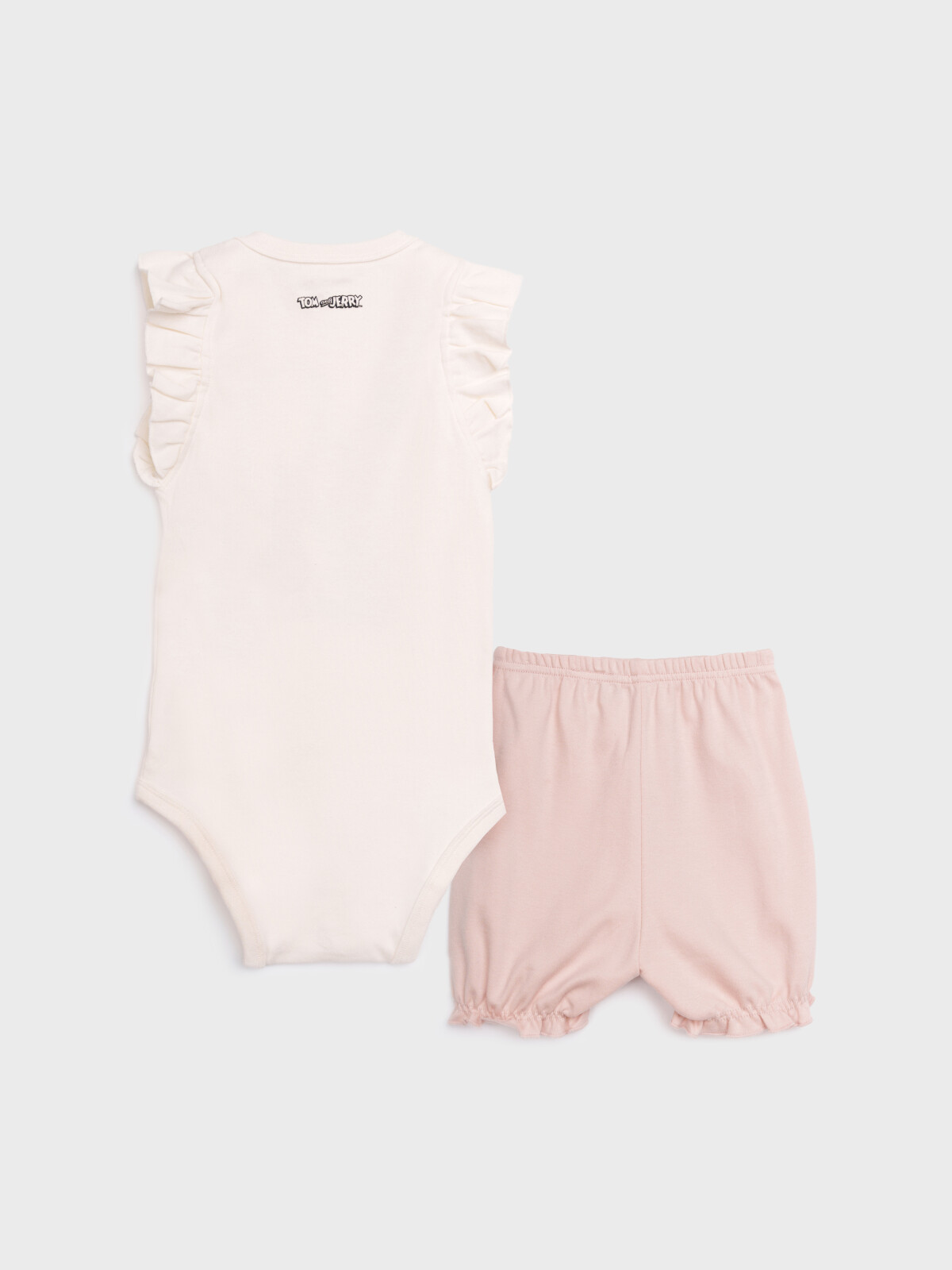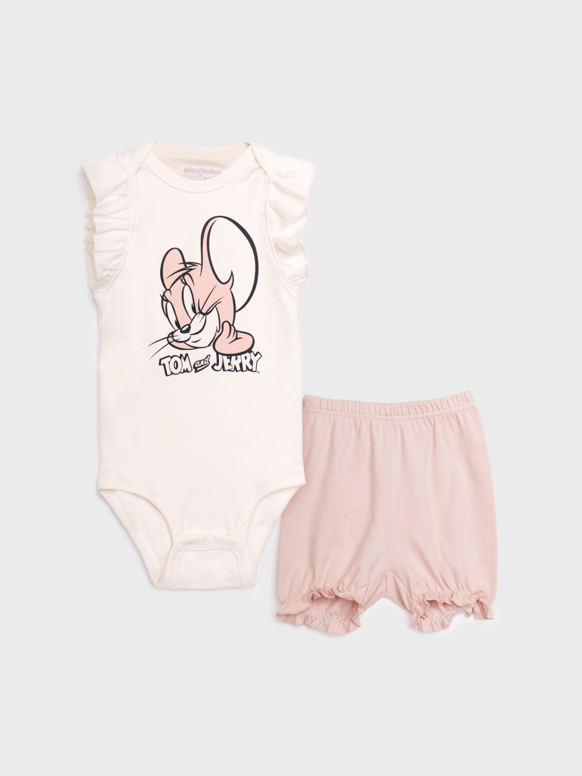 Костюм детский для девочки. Комплект: боди, шорты из натурального хлопкового двойного трикотажа. Кнопки внизу – 2 ряда, боди растет вместе с малышом. Резинка по талии. Шорты на резинке. Модель выполнена из качественного и приятного на ощупь трикотажа.