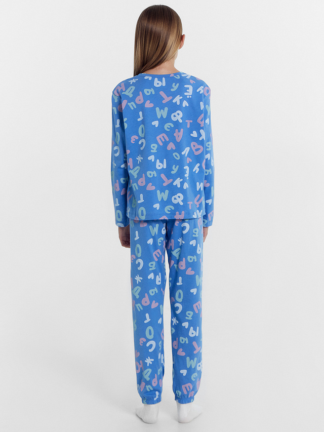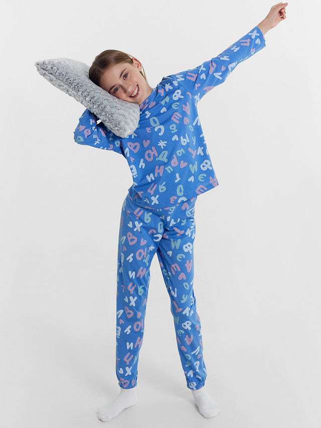 Комплект для девочек (джемпер, брюки) синий с алфавитом