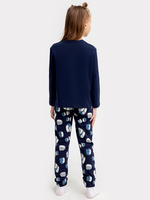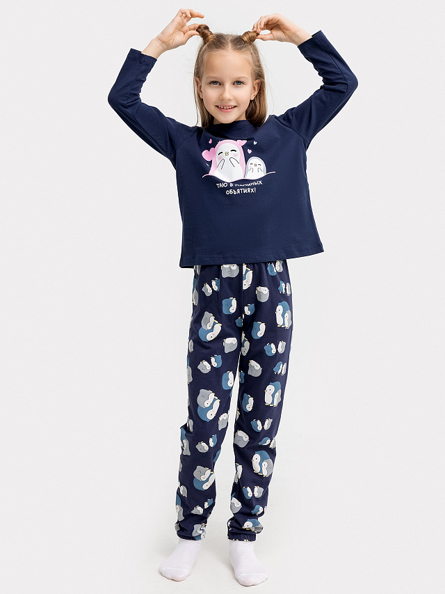 Комплект для девочек (джемпер, брюки) синий с пингвинами