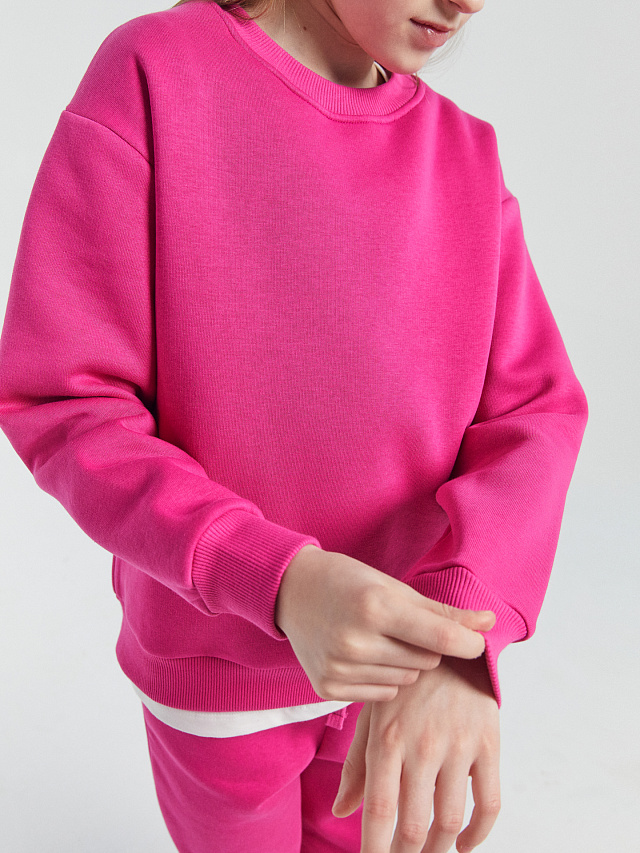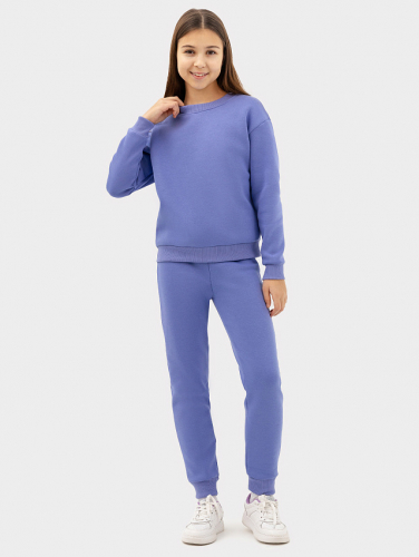 Комплект из трикотажного футера с нежным и теплым подчесом. Джемпер свободного силуэта, со углубленной проймой, длинными рукавами на манжетах и круглой горловиной. Брюки средней посадки, прямые, слегка зауженые к низу, с регулировочным шнурком в поясе. Отличный выбор для прохладной погоды!
