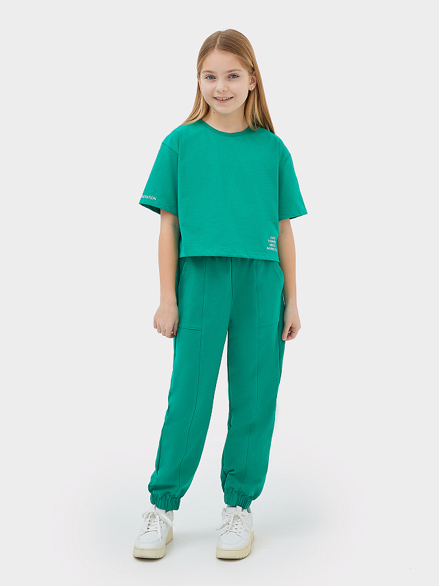 Комплект для девочек (футболка, брюки) в зеленом цвете
