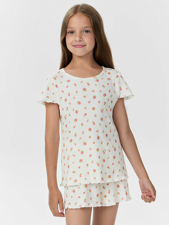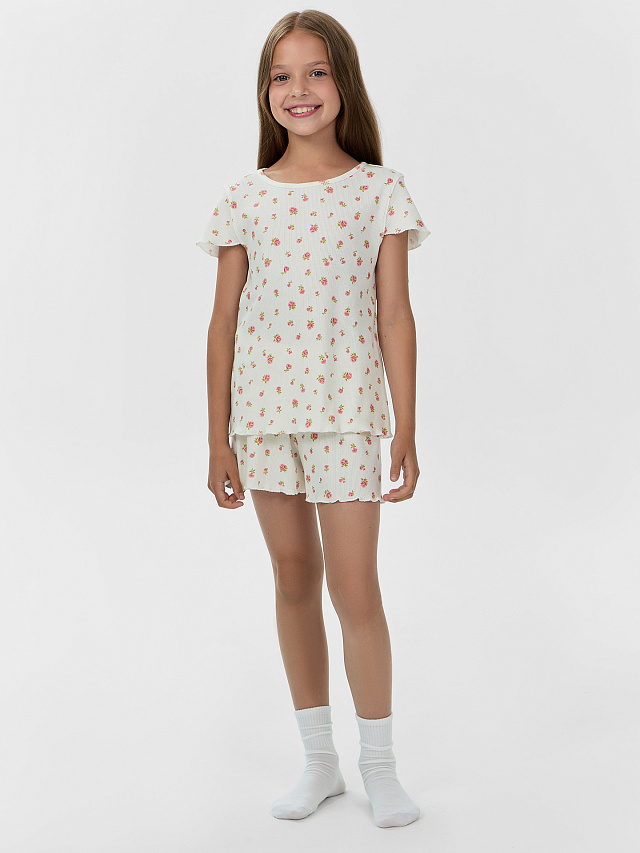 Нежная пижама для девочек состоит из футболки и шорт, выполненных из рибаны, что обеспечивает мягкость и комфорт при носке. Футболка имеет прямой силуэт и круглую горловину, создавая стильный и удобный образ. Шорты также имеют прямой силуэт и эластичный пояс, обеспечивая свободу движений и максимальный комфорт во время сна. Этот комплект идеально подходит для отдыха и сна, даря уют и спокойствие в любое время года. Нежный и приятный материал делает эту пижаму любимым выбором для маленьких ценительниц стиля.