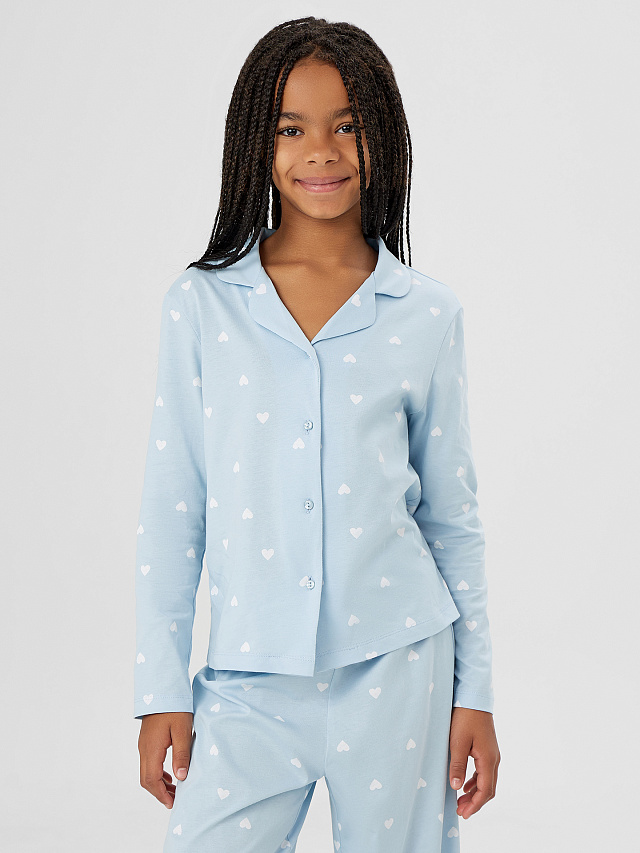 Комплект для девочек голубой с принтом сердечки