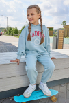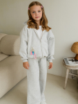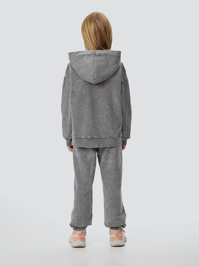 Серый костюм для девочек с обработкой acid wash — это стиль и комфорт для вашей малышки. Acid wash — это особая техника, которая создает мягкие размытые эффекты и винтажный вид. Каждый комплект уникален благодаря неравномерному окрашиванию, ткань становится особенно мягкой, а рисунок не выцветает со временем.