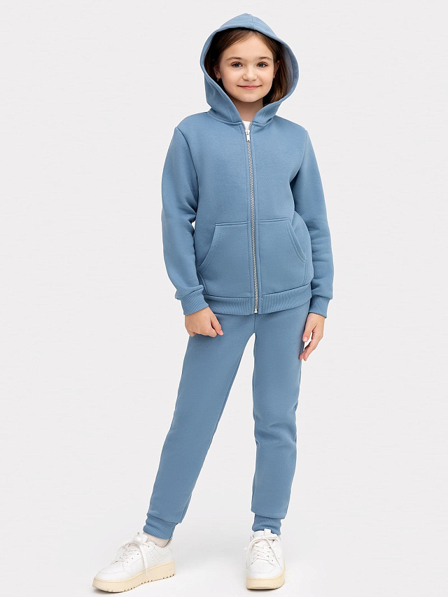 Стильный детский комплект из трикотажного футера с подчесом. Он идеально подойдет для вашей девочки, сделав ее образ не только стильным, но и комфортным. Основная деталь костюма — жакет прямого силуэта. Он имеет застежку на молнию, что позволяет легко надевать и снимать его. Уютный капюшон добавляет дополнительную защиту от холодного ветра или непогоды. Длинные рукава обеспечивают тепло, а немного спущенная линия плеча создает эффектный и современный вид. Манжеты и пояс из рибаны обеспечивают хорошую посадку, чтобы ваша девочка чувствовала себя свободно. Брюки прямого силуэта, с резинкой и регулировочным шнурком в поясе. Этот комплект — не только модный, но и практичный выбор для вашей малышки. Он позволит ей чувствовать себя уверенно в любое время года. Неважно, играет ли она на улице или остается дома — этот комплект легко сочетается с другими предметами гардероба и может быть использован для создания разных образов. Не упустите возможность приобрести эту универсальную демисезонную новинку из трикотажного футера. Рекомендуем!