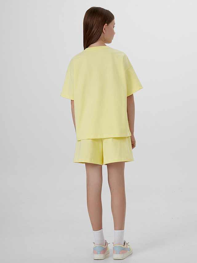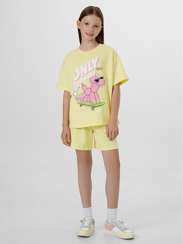 Комплект для девочек желтый с надписью «Только вперед» — это яркий и удобный набор для активного отдыха и повседневных приключений. Комплект состоит из свободной футболки и шорт, которые не сковывают движения и дарят комфорт в течение всего дня.