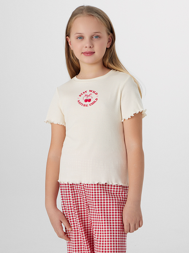 Комплект домашний для девочек с надписью «Оставайся диким ребёнком природы» состоит из джемпера и брюк из мягкого хлопка. Он создан для активного отдыха и игр, давая полную свободу движений.