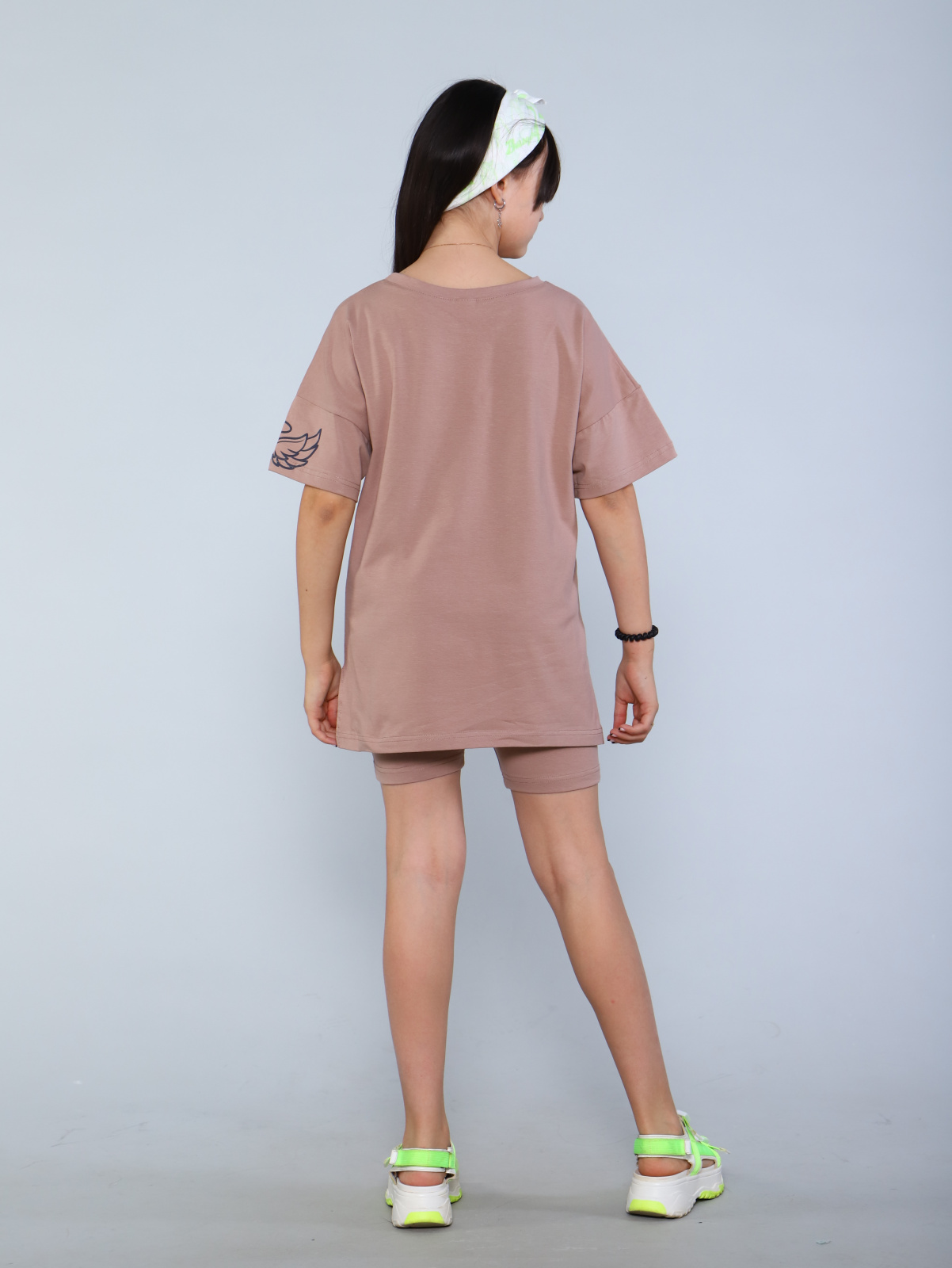 Подростковый комплект укороченные лосины и футболка сшит из натуральной ткани с хлопком и добавлением лайкры.