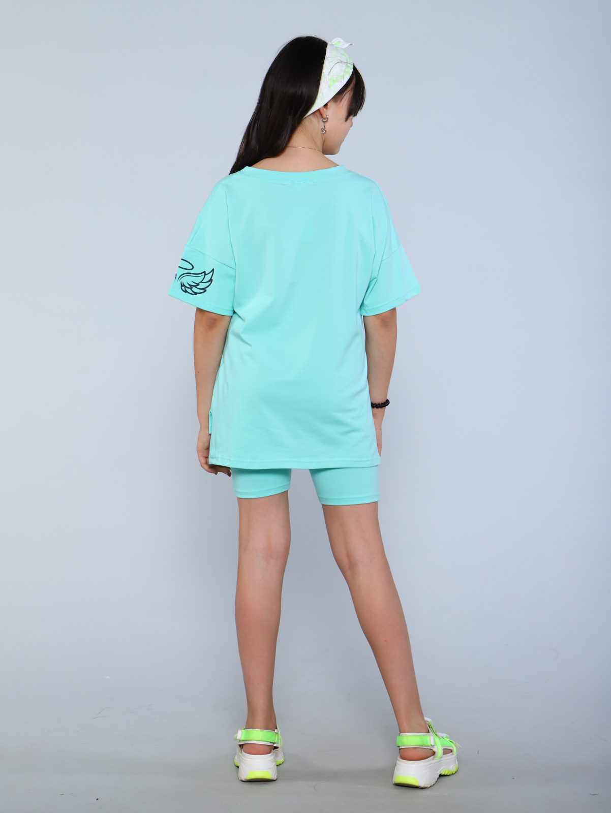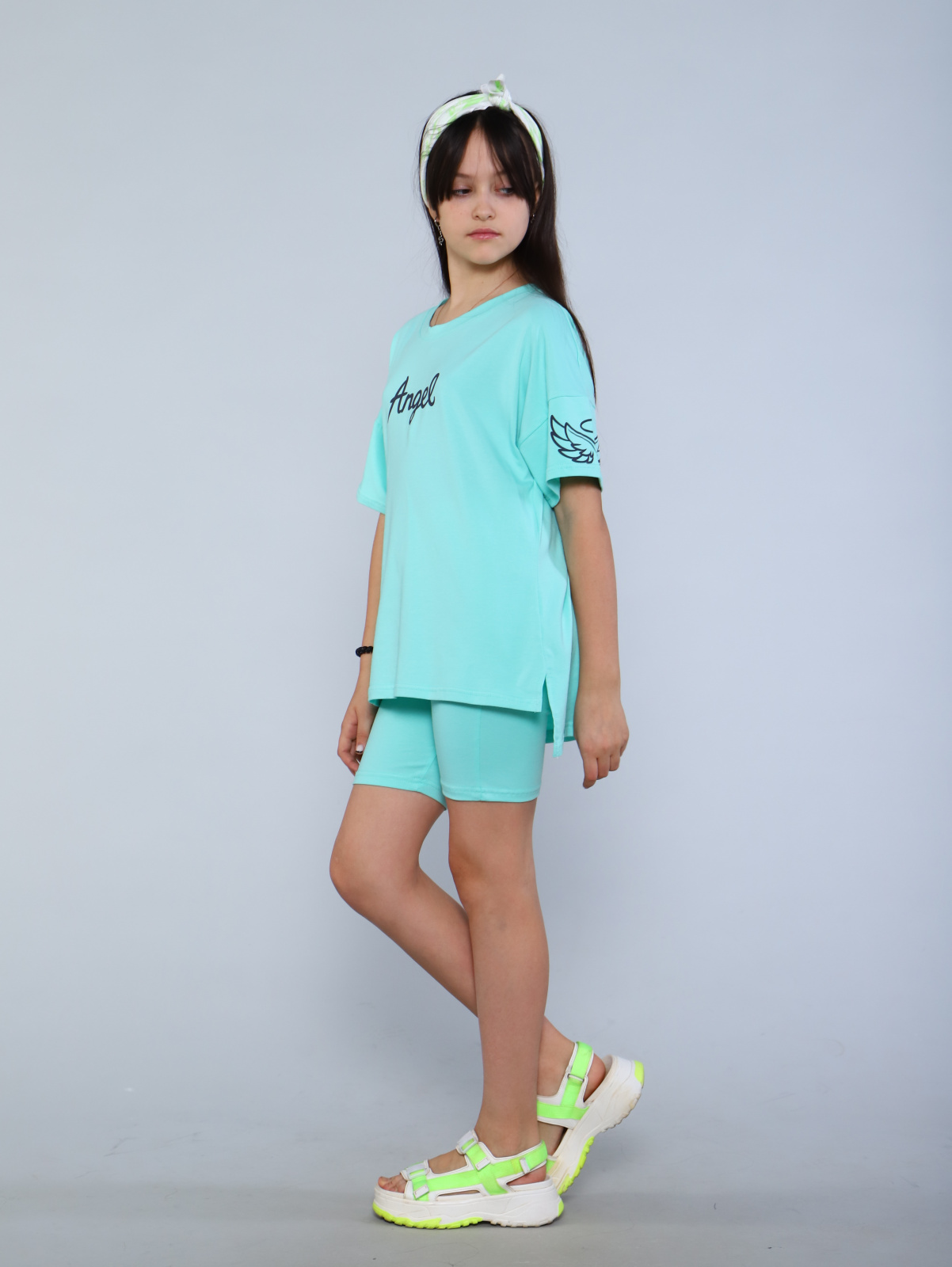 Подростковый комплект укороченные лосины и футболка сшит из натуральной ткани с хлопком и добавлением лайкры.