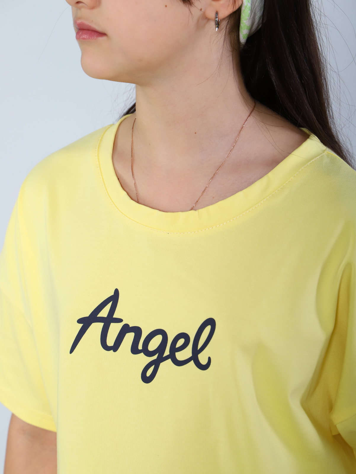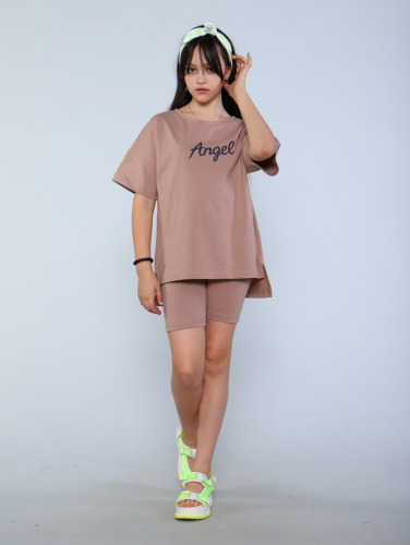 Подростковый комплект укороченные лосины и футболка сшит из натуральной ткани с хлопком и добавлением лайкры.