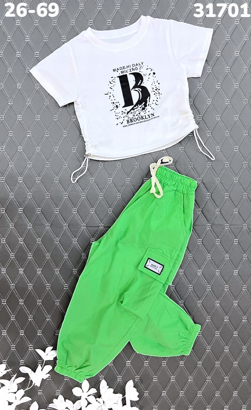Комплект состоит из брюк и футболки, что создаёт комфорт в повседневной носке.