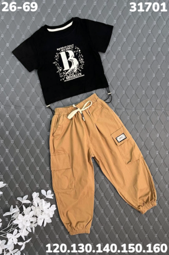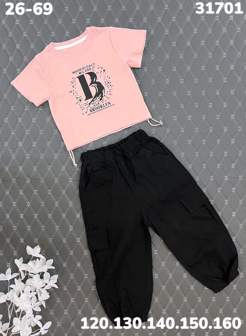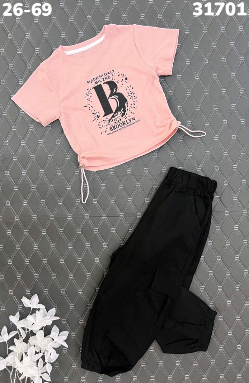 Комплект состоит из брюк и футболки, что создаёт комфорт в повседневной носке.