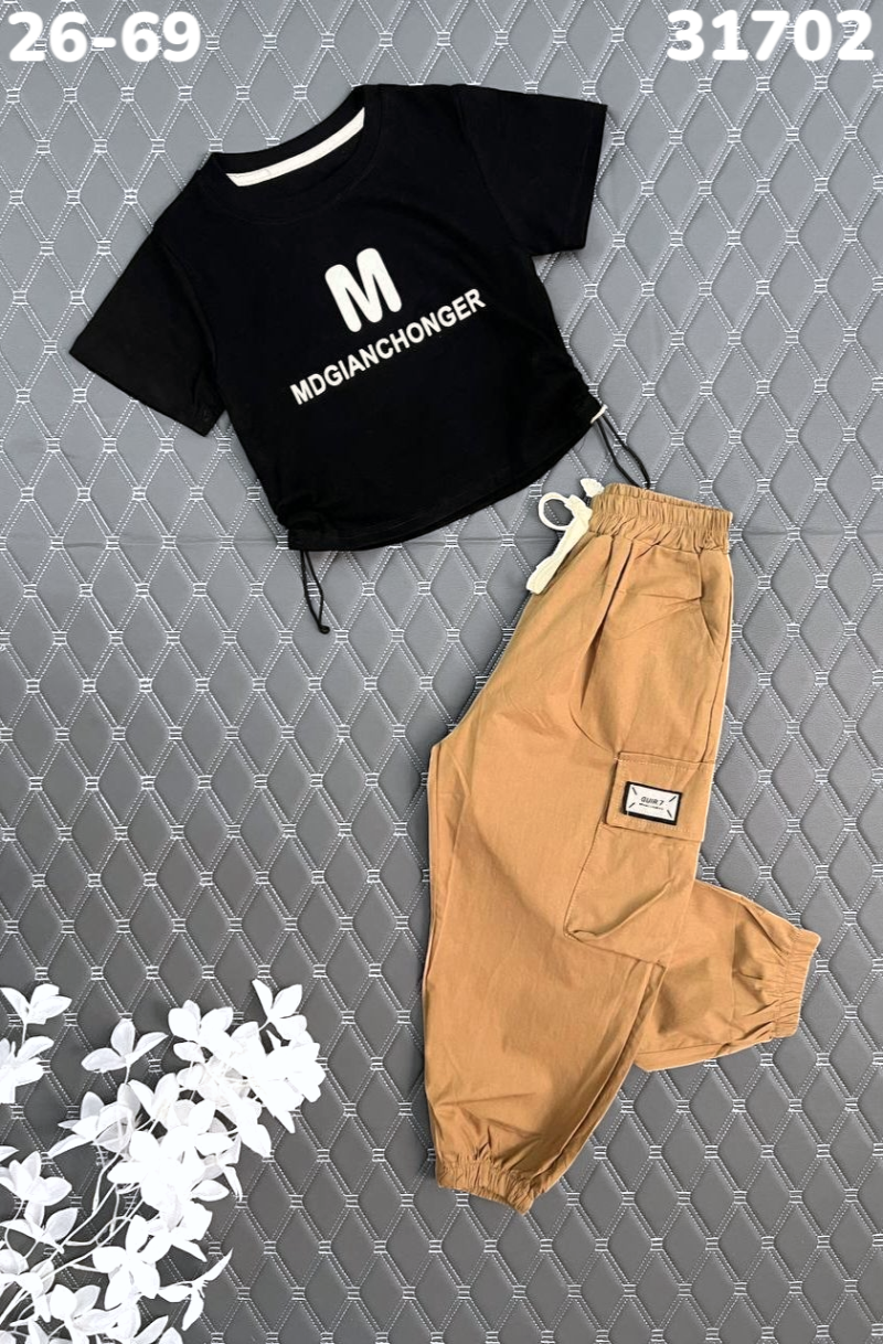Комплект состоит из брюк и футболки, что создаёт комфорт в повседневной носке.