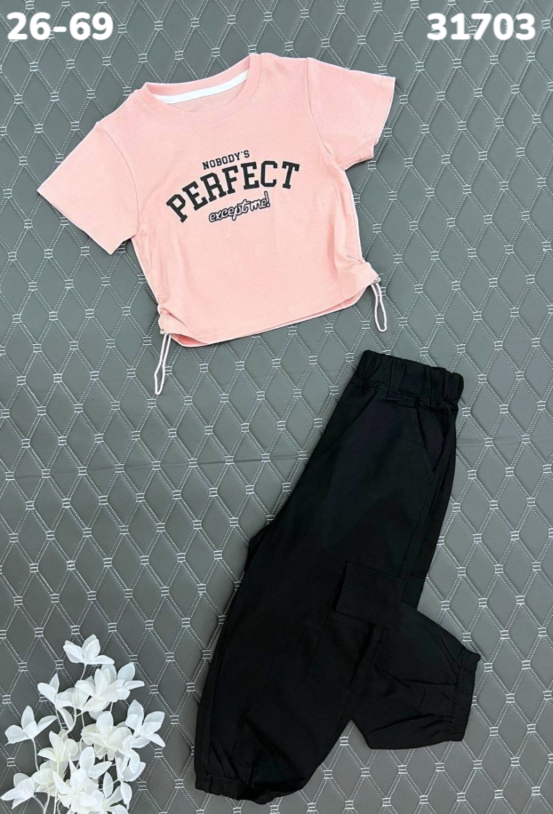 Комплект состоит из брюк и футболки, что создаёт комфорт в повседневной носке.