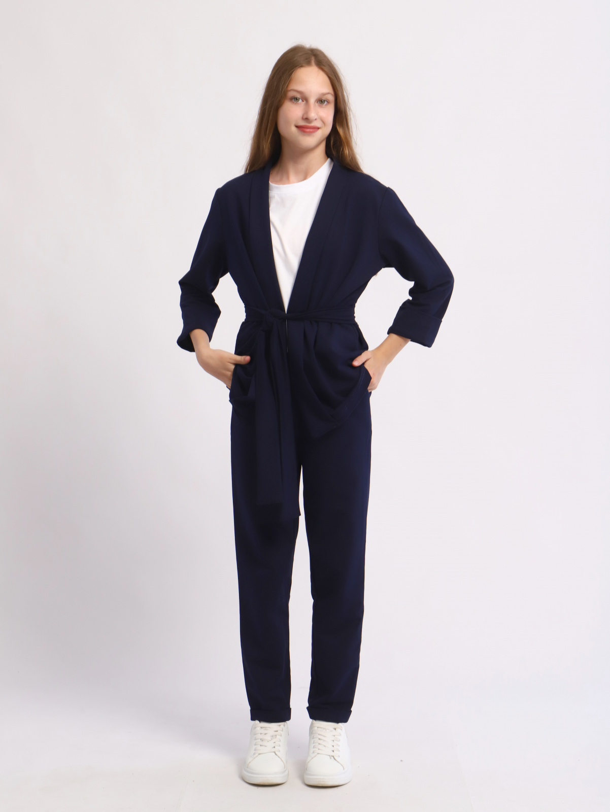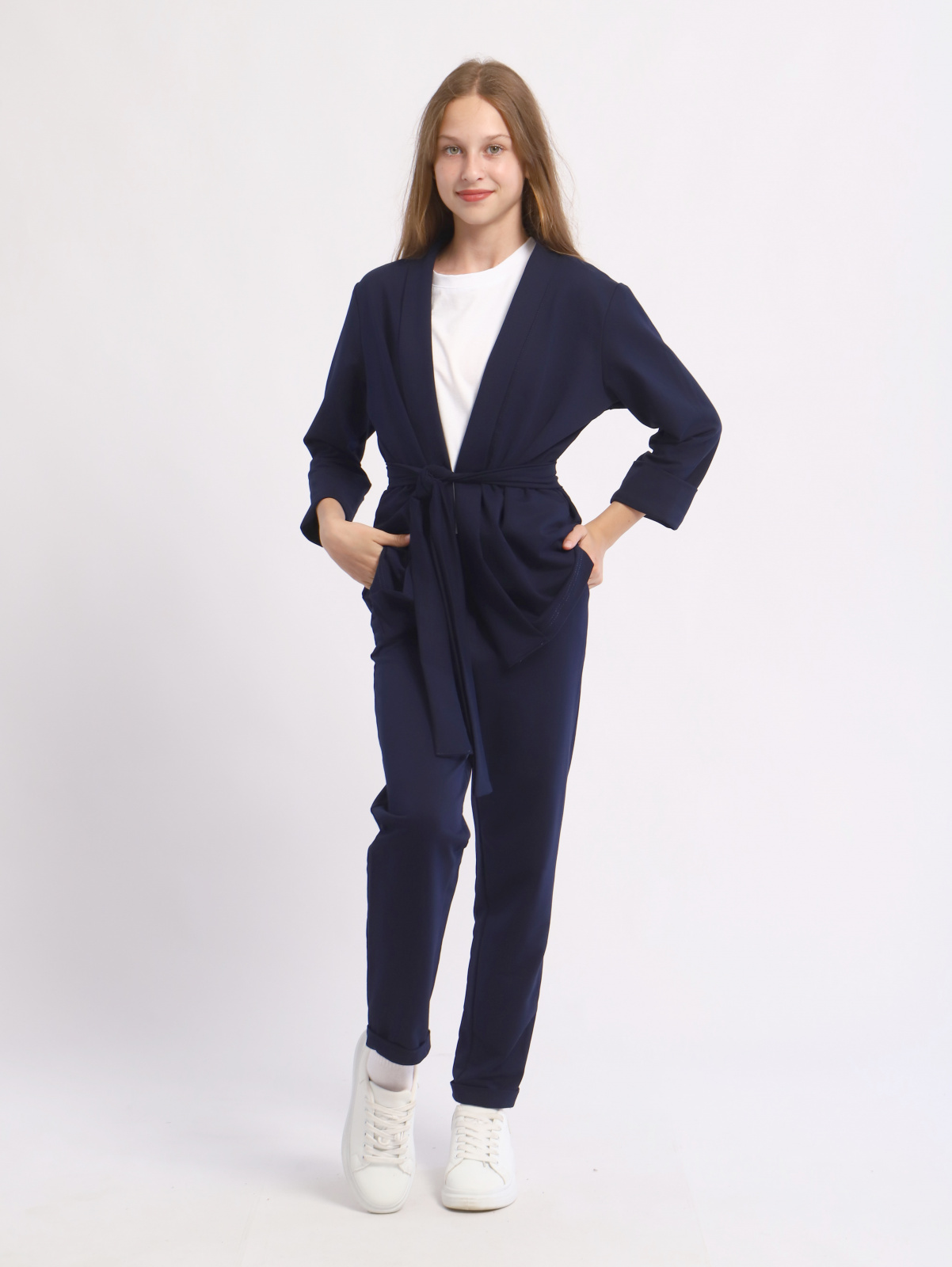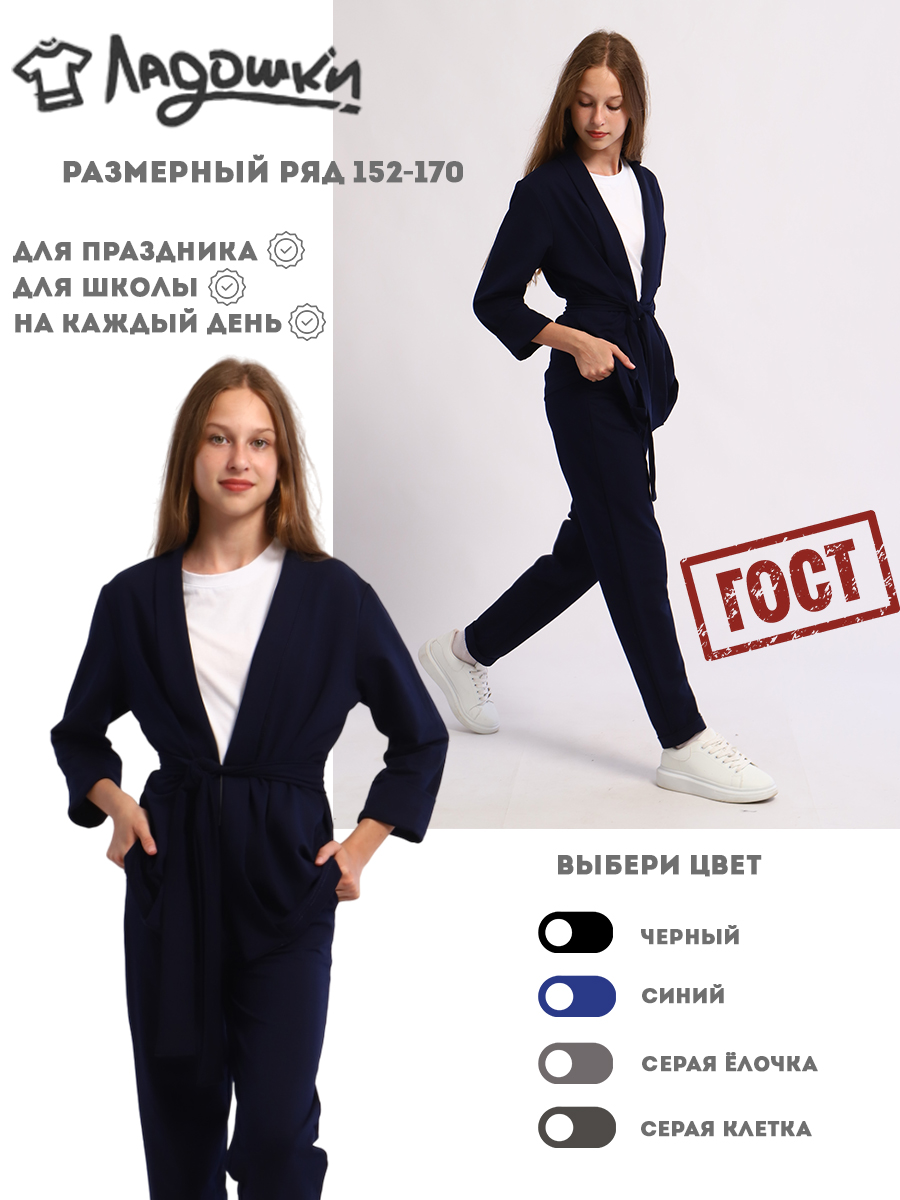 Трикотажный костюм школьный для девочки состоит из жакета с поясом кроя оверсайз и брюк на резинке прямого свободного кроя. Школьная форма имеет брюки с высокой и комфортной посадкой и эластичным поясом на резинке. Штаны длиной 7/8. в боковых швах - карманы. Пиджак школьный можно носить отдельно в повседневной жизни, комплектуя его например, с школьными шортиками или юбками. Жакет объемный с длинным рукавом, на талии фиксируется поясом. базовый универсальный комплект школьной одежды можно носить как с кроссовками или кедами, так и с классическими туфлями на высоком или низком каблуке. Нарядный костюм для торжеств сочетается и с шелковыми блузками. Школьный брючный наряд для девочки можно надеть не только на уроки но и на праздничные мероприятия. Деловой классический стиль так же востребован и повседневно. Натуральны хлопковый состав позволяет чувствовать удобство и комфорт. Базовая классическая модель костюма школьного очень идет девочкам постарше. Это прекрасный подарок к началу учебного года на 1 сентября или на 8 марта! Размерный ряд достаточно широк, до 164 роста.