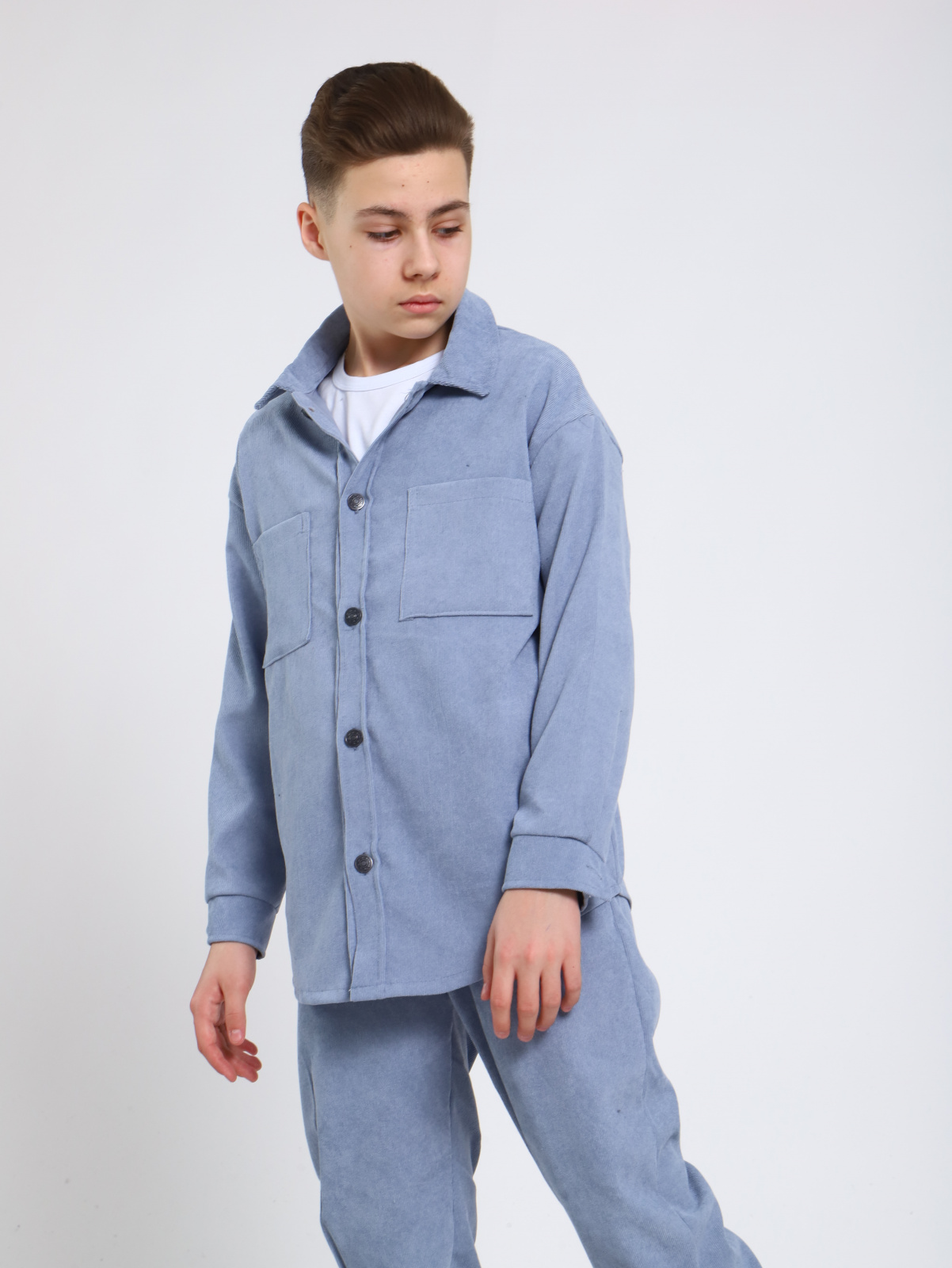 Модный подростковый вельветовый костюм в монохромной гамме для мальчиков и девочек средней и старшей школы. Этот повседневный детский костюм сшит из мягкой комфортной вельветовой ткани в мелкий рубчик. Стильный комплект в стиле спортшик состоит из джоггеров спортивного кроя и рубашки модного стиля оверсайз (oversize) с нагрудными карманами. Рубашка большого объемного силуэта так любимого подростками и молодежью, низ полукруглой формы, вместительные карманы на груди, удобный мягкий ворот, красивые металлические пуговицы на планке. Брюки-джоггеры свободного силуэта с поясом на резинке, низ брюк оформлен на резинке, боковые отрезные кармашки. Костюм подходит для весенних прогулок , прохладных летних вечеров, комфортен в любое время в помещении. Рубашка и брюки отлично используются как самостоятельные изделия для комплектования интересных образов. Костюмчик-двойка подходит для школы, повседневной носки, а также в качестве нарядного комплекта.