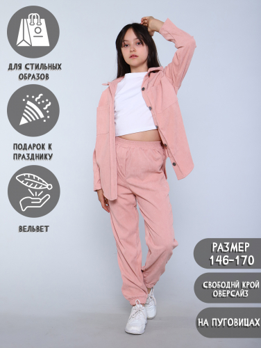 Модный подростковый вельветовый костюм в монохромной гамме для мальчиков и девочек средней и старшей школы. Этот повседневный детский костюм сшит из мягкой комфортной вельветовой ткани в мелкий рубчик. Стильный комплект в стиле спортшик состоит из джоггеров спортивного кроя и рубашки модного стиля оверсайз (oversize) с нагрудными карманами. Рубашка большого объемного силуэта так любимого подростками и молодежью, низ полукруглой формы, вместительные карманы на груди, удобный мягкий ворот, красивые металлические пуговицы на планке. Брюки-джоггеры свободного силуэта с поясом на резинке, низ брюк оформлен на резинке, боковые отрезные кармашки. Костюм подходит для весенних прогулок , прохладных летних вечеров, комфортен в любое время в помещении. Рубашка и брюки отлично используются как самостоятельные изделия для комплектования интересных образов. Костюмчик-двойка подходит для школы, повседневной носки, а также в качестве нарядного комплекта. Костюм двойка брюки и рубашка оверсайз детский подростковый однотонный повседневный для школы на мальчика и на девочку вельветовый в рубчик в пастельных тонах размер 140 146 152 158 164 170.