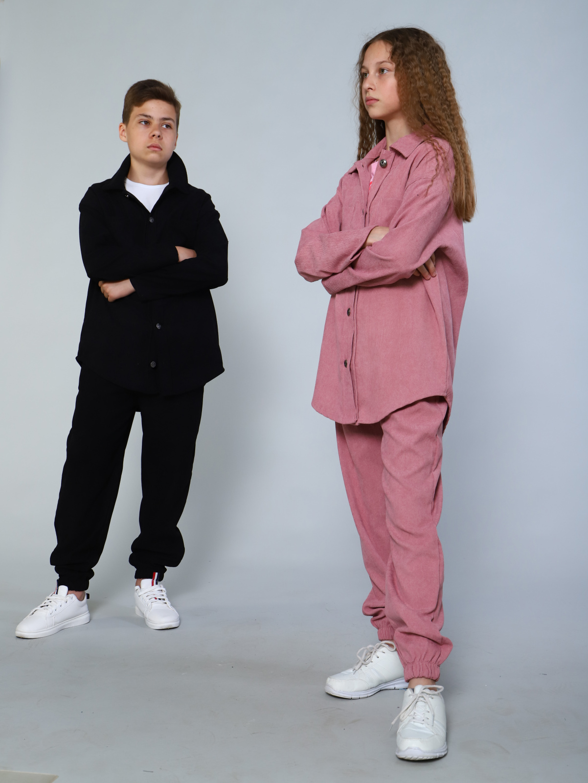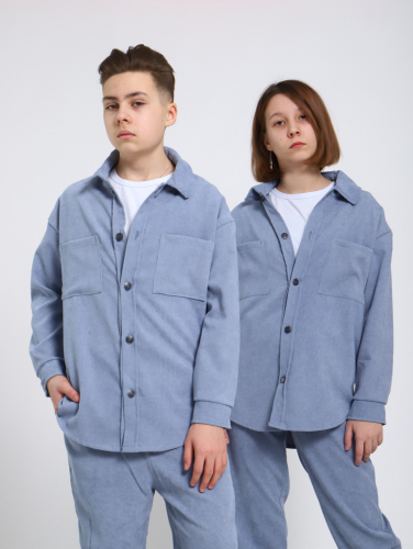 Модный подростковый вельветовый костюм в монохромной гамме для мальчиков и девочек средней и старшей школы. Этот повседневный детский костюм сшит из мягкой комфортной вельветовой ткани в мелкий рубчик. Стильный комплект в стиле спортшик состоит из джоггеров спортивного кроя и рубашки модного стиля оверсайз (oversize) с нагрудными карманами. Рубашка большого объемного силуэта так любимого подростками и молодежью, низ полукруглой формы, вместительные карманы на груди, удобный мягкий ворот, красивые металлические пуговицы на планке. Брюки-джоггеры свободного силуэта с поясом на резинке, низ брюк оформлен на резинке, боковые отрезные кармашки. Костюм подходит для весенних прогулок , прохладных летних вечеров, комфортен в любое время в помещении. Рубашка и брюки отлично используются как самостоятельные изделия для комплектования интересных образов. Костюмчик-двойка подходит для школы, повседневной носки, а также в качестве нарядного комплекта. Костюм двойка брюки и рубашка оверсайз детский подростковый однотонный повседневный для школы на мальчика и на девочку вельветовый в рубчик в пастельных тонах размер 140 146 152 158 164 170.