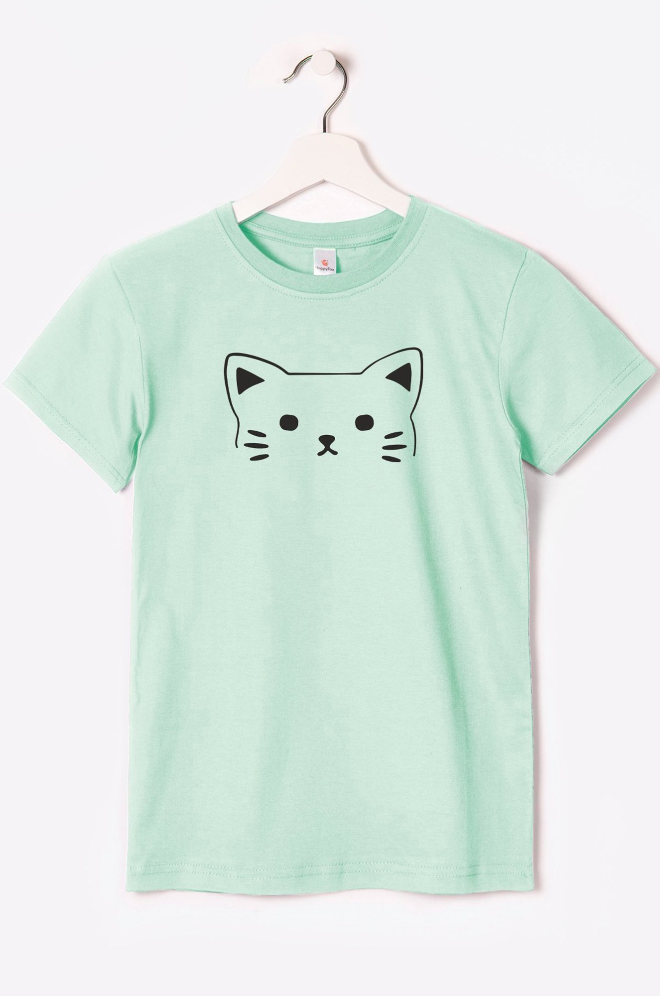Футболка мятного цвета выполнена из легкой ткани кулирная гладь, которая идеальна для лета. Хлопковая футболка с принтом Котики выдерживает многочисленные стирки без потери размеров и четкости рисунка.