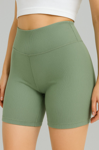 Широкая эластичная резинка нежно прилегает и не сдавливает живот. Благодаря облегающему крою лаймовые велосипедки в рубчик повторяют каждое движение тела.